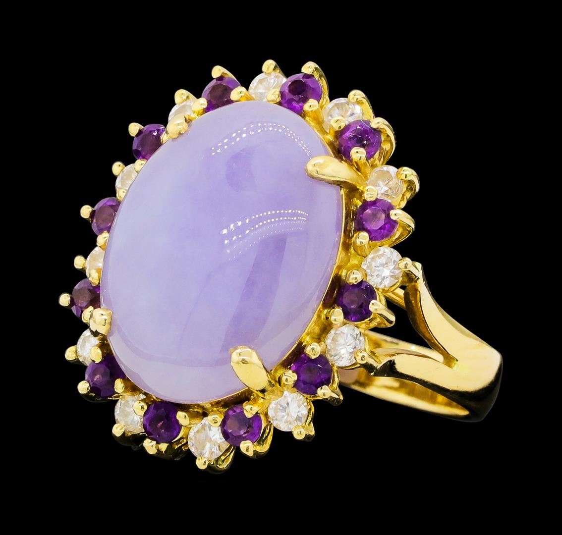 14KT Yellow Gold Ladies 6.32 ctw Jade, Amethyst, and Diamond Ring
