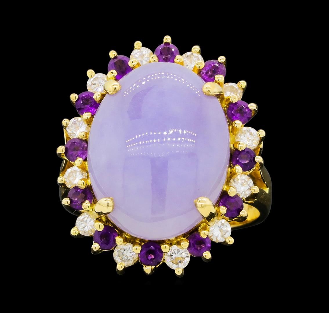 14KT Yellow Gold Ladies 6.32 ctw Jade, Amethyst, and Diamond Ring
