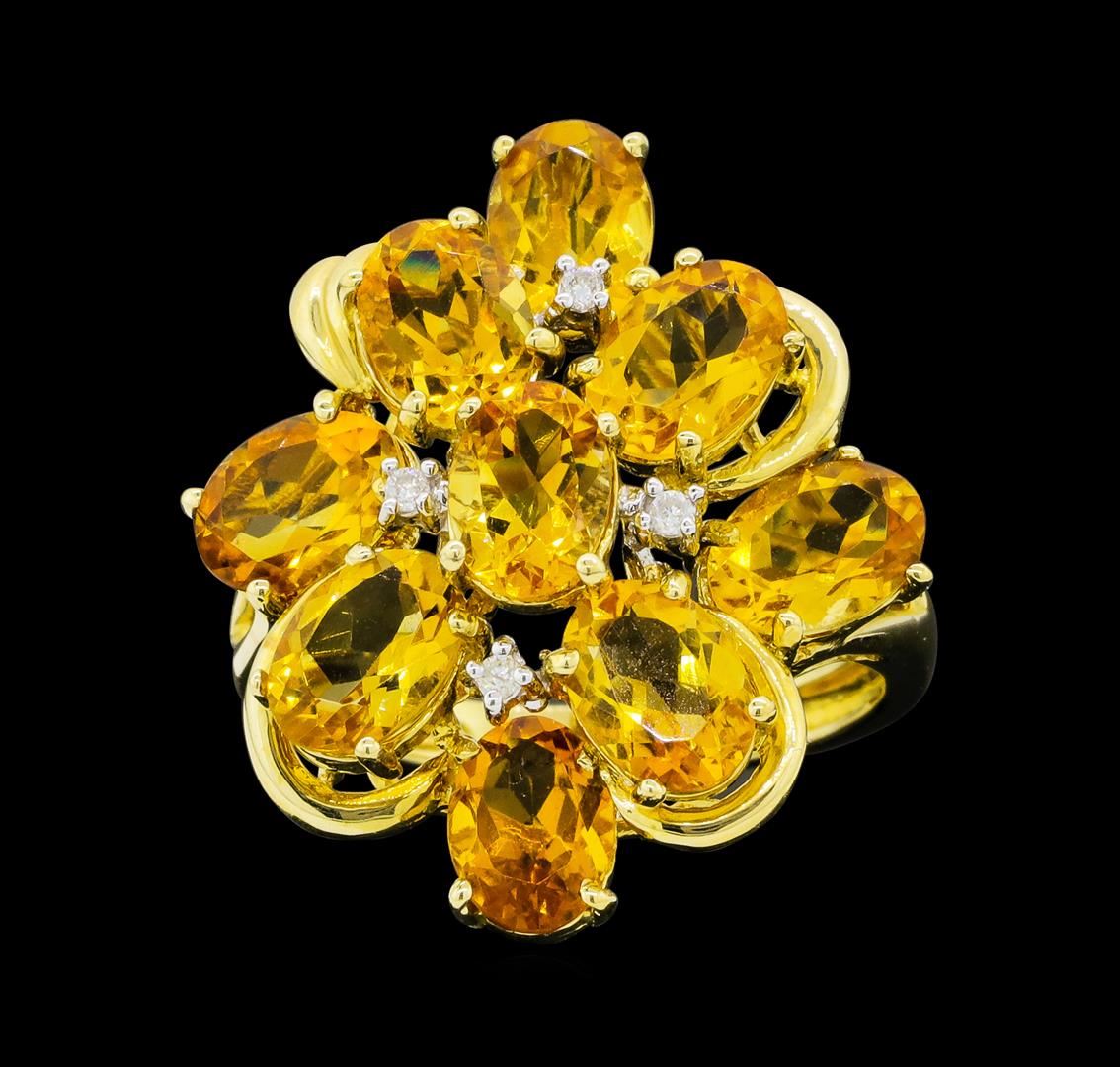 14KT Yellow Gold Ladies 7.50 ctw Citrine and Diamond Cluster Ring