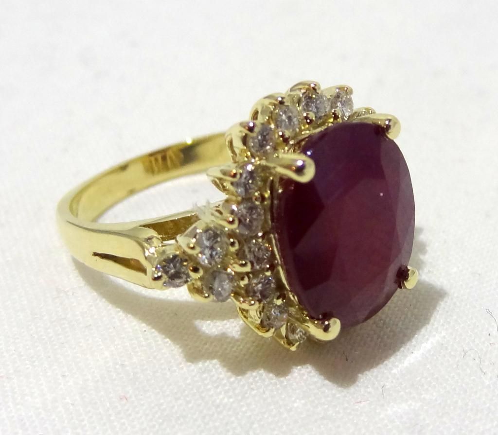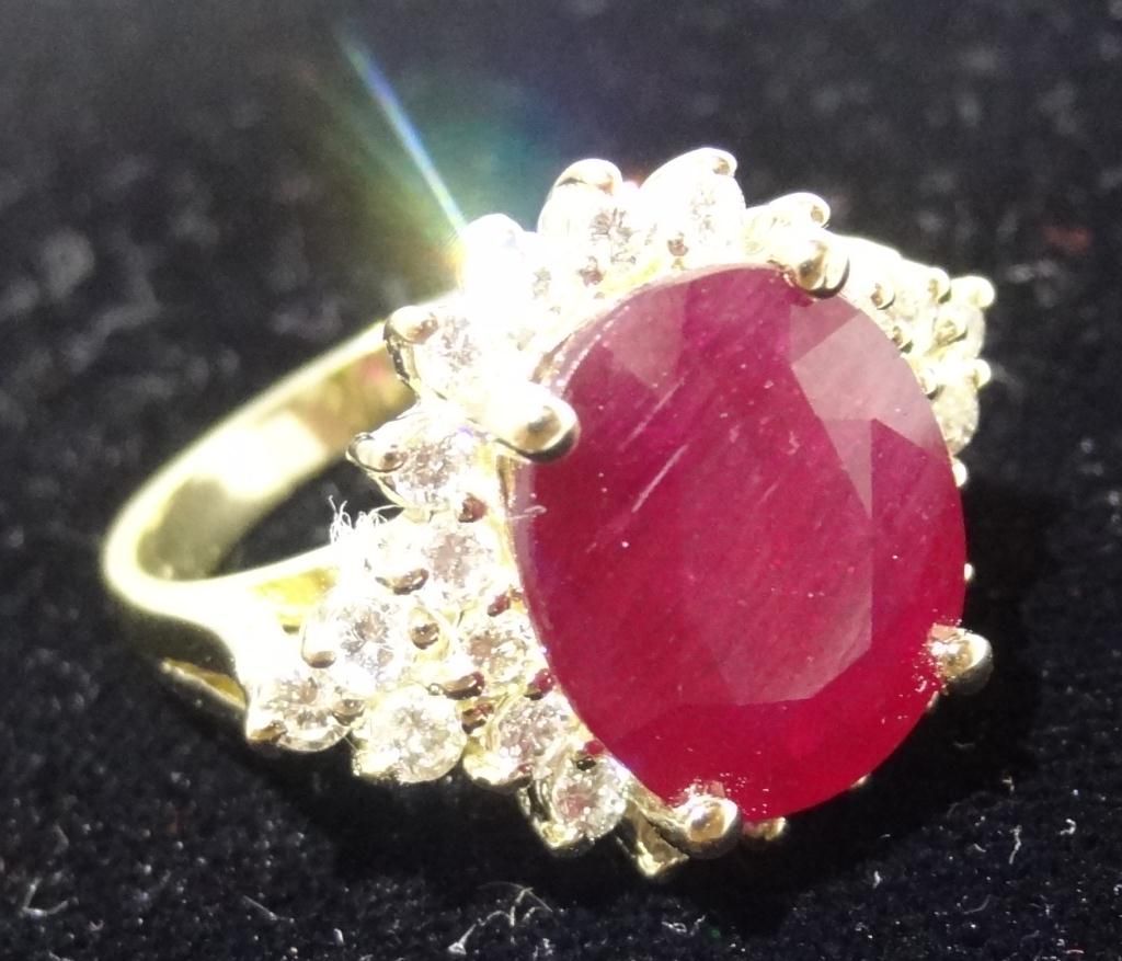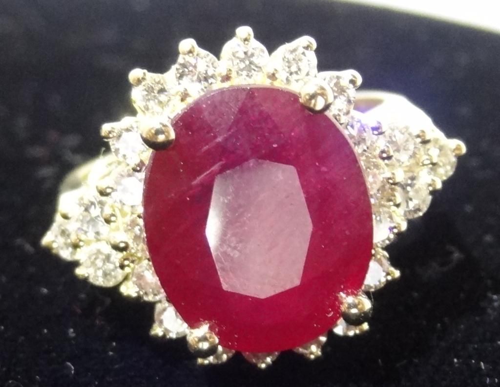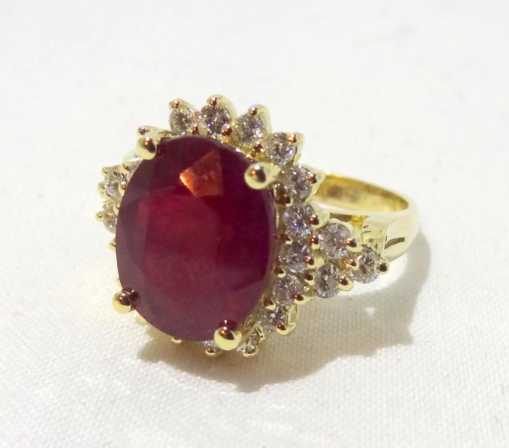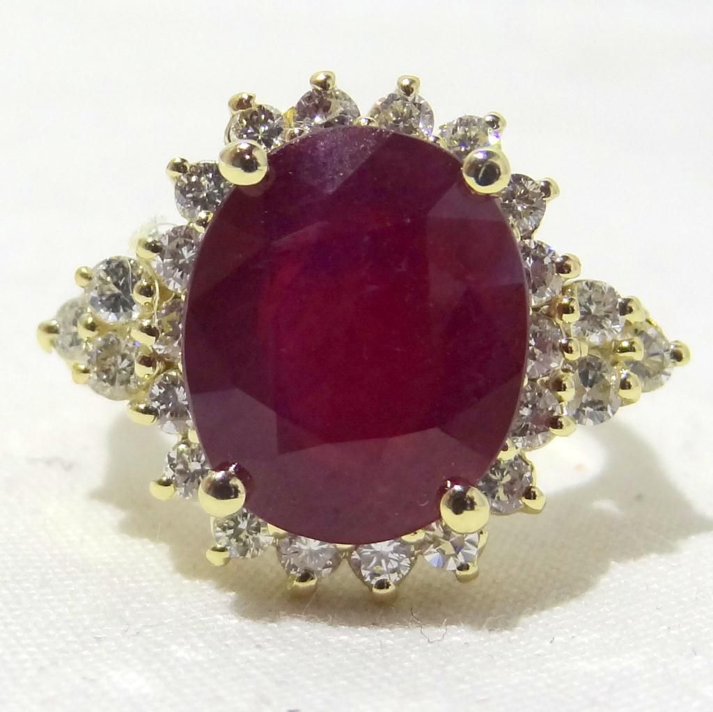 One Prong set oval mixed cut natural Runy, measuring 12.00 x 10.20 x 5.50mm, 20% bulge factor, approximate weight of 6.62ct.,clarity is moderately included, type II, dark, very slightly brownish, slightly purplish red color, (GIA s1pR 7/3), cut is good. Transmitting light somewhat diffusely, transparent to translucent, Naturally occurring internal and external characteristics are present. Indications of Laboratory high temperature heat treatment, with glass and flux additive. Colored Stone Grading Report attached. Graded in the setting. Ruby has low tolerance to rhodium plating, re polishing the surface, and ultrasonic cleaning