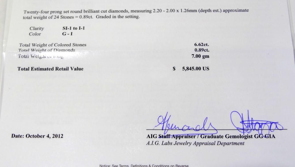 Total Weight of colored stones 6.62ct.
