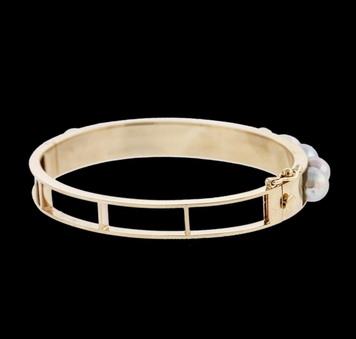One bangle bracelet featuring: 14KT yellow gold weighing 22.50 grams containing pearls.