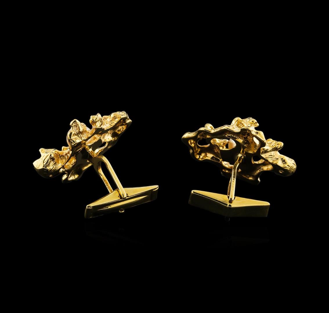 One pair of cufflinks featuring: 14KT yellow gold weighing approximately 17.3 grams containing two pearls measuring approximately 6mm.
