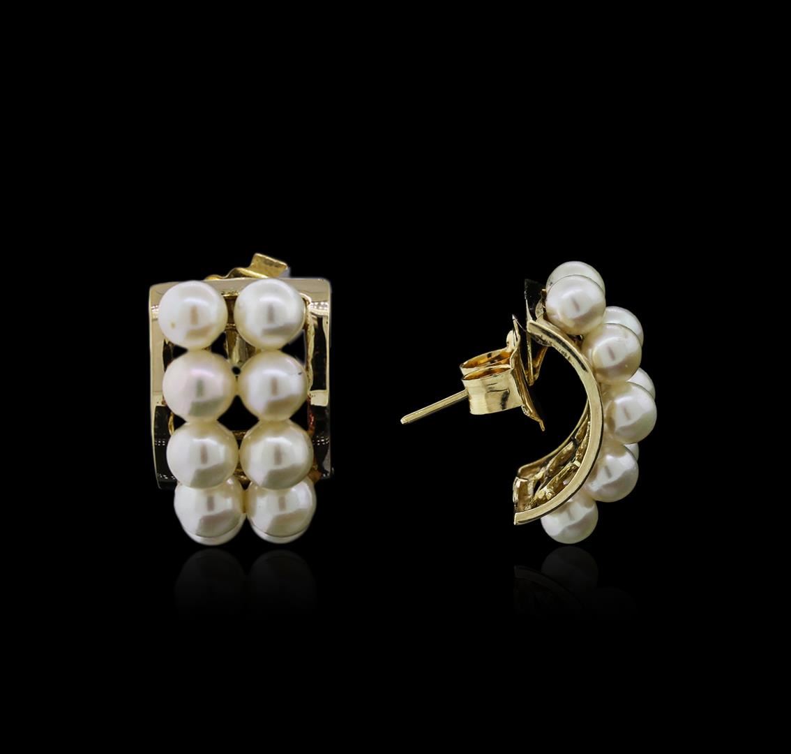 One pair of earrings featuring: 14KT yellow gold weighing 7.30 grams containing pearls.