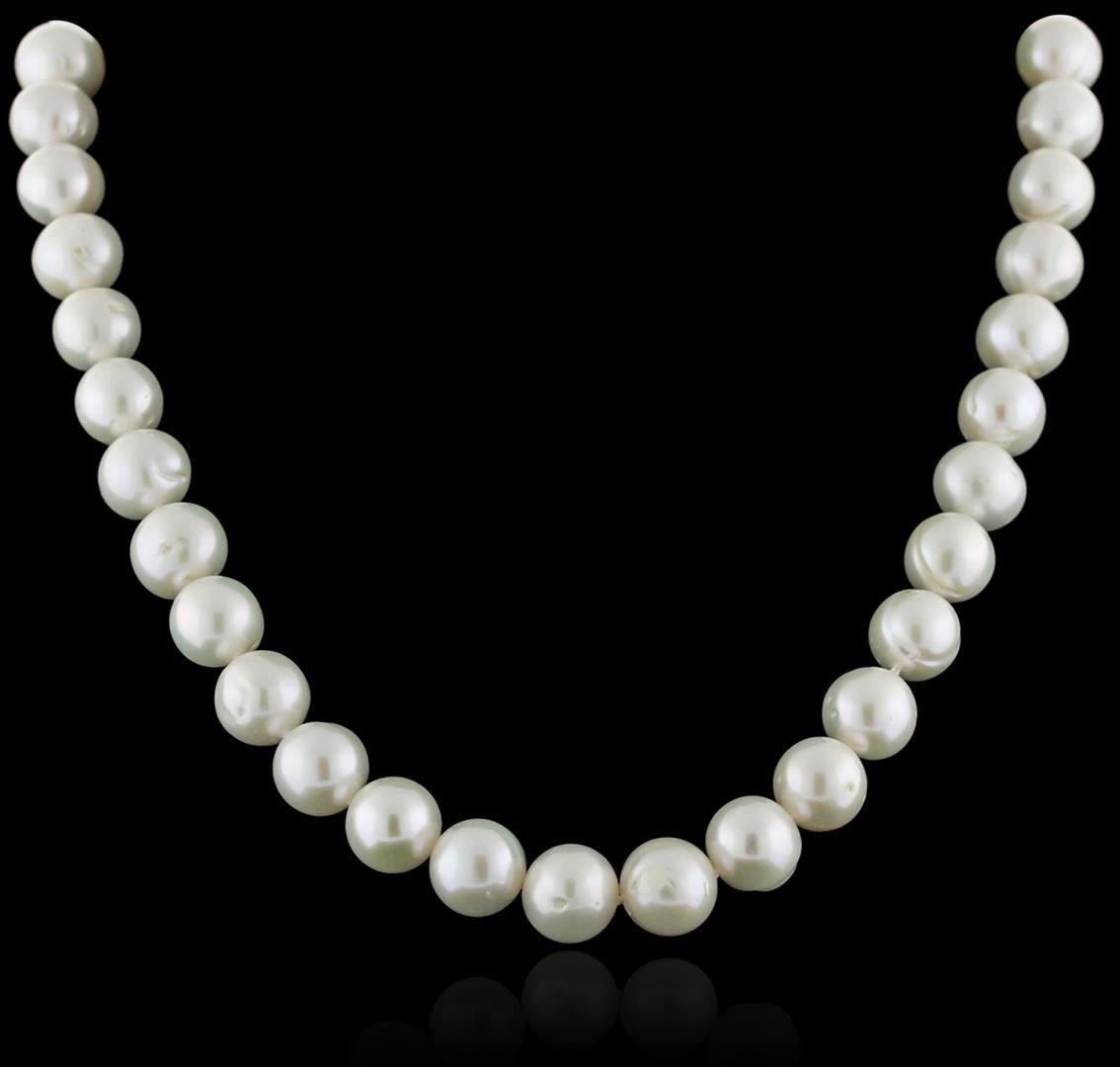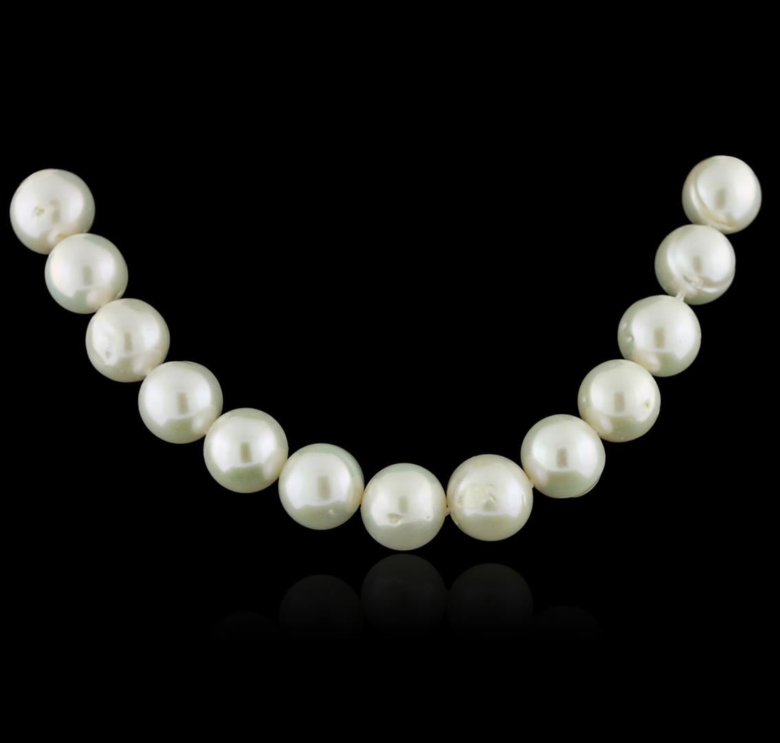 One necklace featuring: 14KT yellow gold weighing 66.71 grams containing 38 fresh water pearls measuring 11mm.