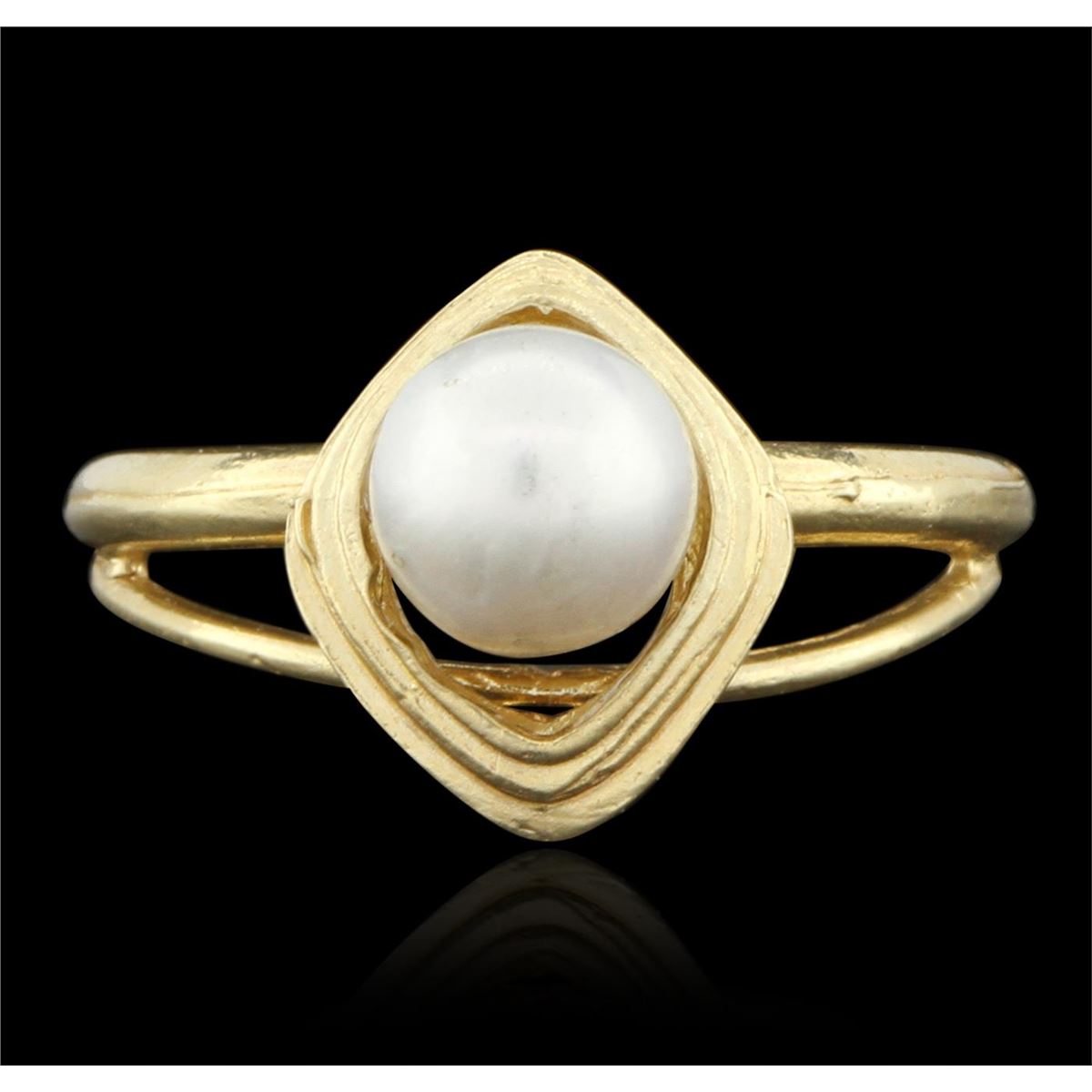 One ring featuring: 3.2 grams of 14KT yellow gold and (1) pearl. Ring size 5.5.