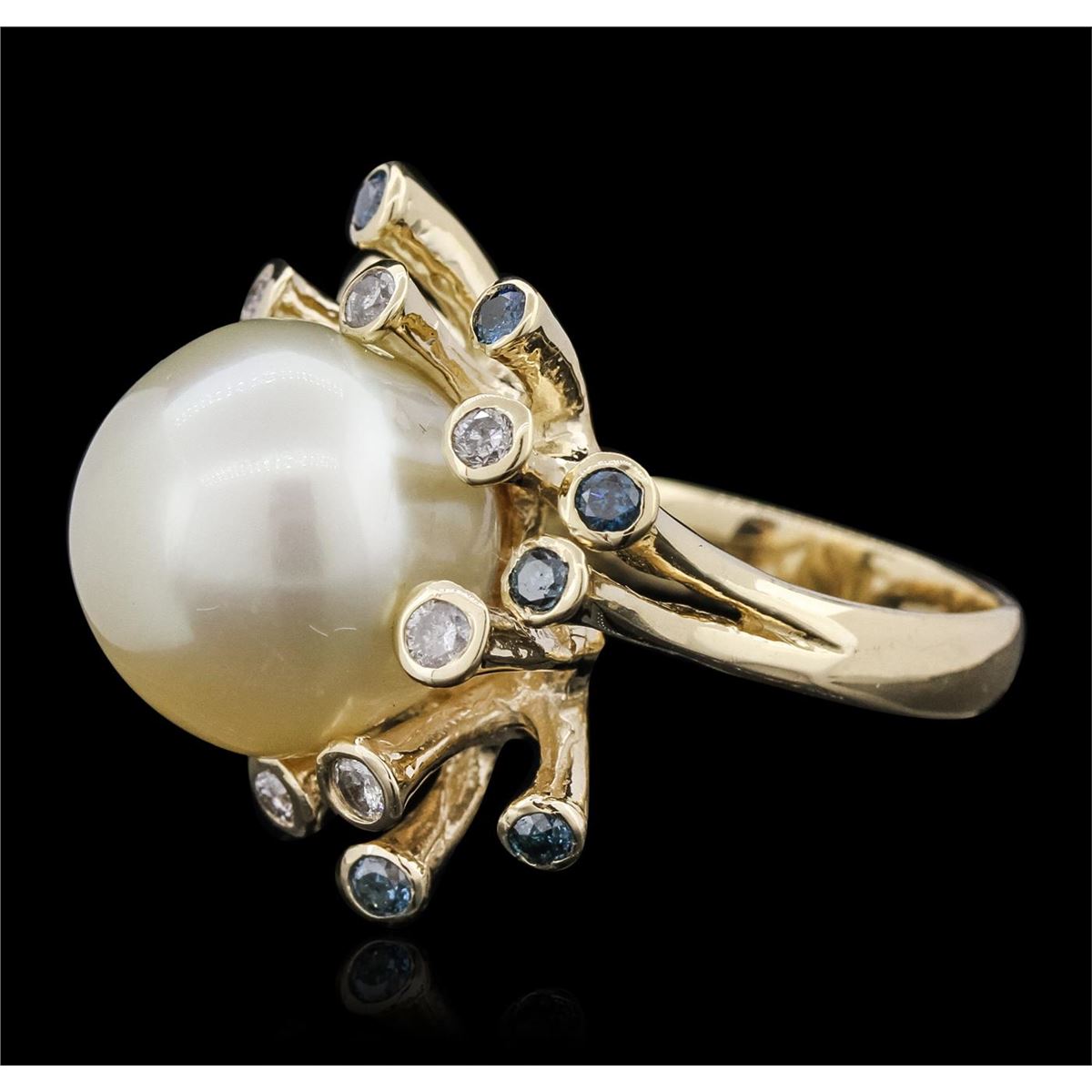 One ring featuring: 14.41 grams of 14KT yellow gold, (1) pearl, round diamonds with a total weight of 0.81cts.