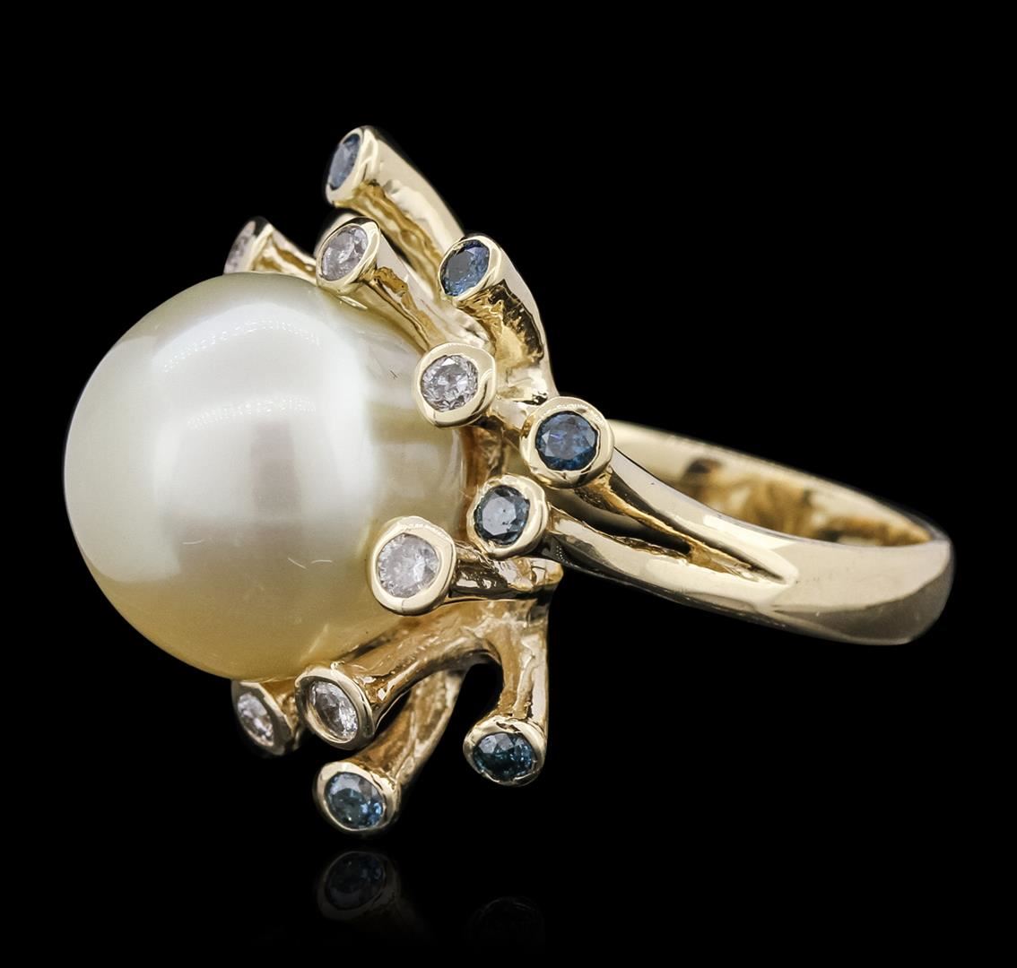 One ring featuring: 14.41 grams of 14KT yellow gold, (1) pearl, round diamonds with a total weight of 0.81cts.
