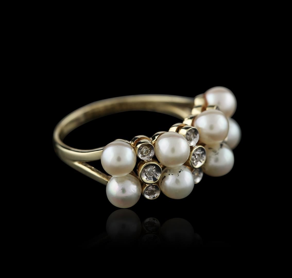 One ring featuring: 14KT yellow gold weighing 3.50 grams containing pearls and diamonds with a total diamond weight of 0.10ct.