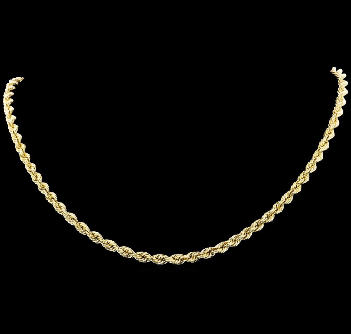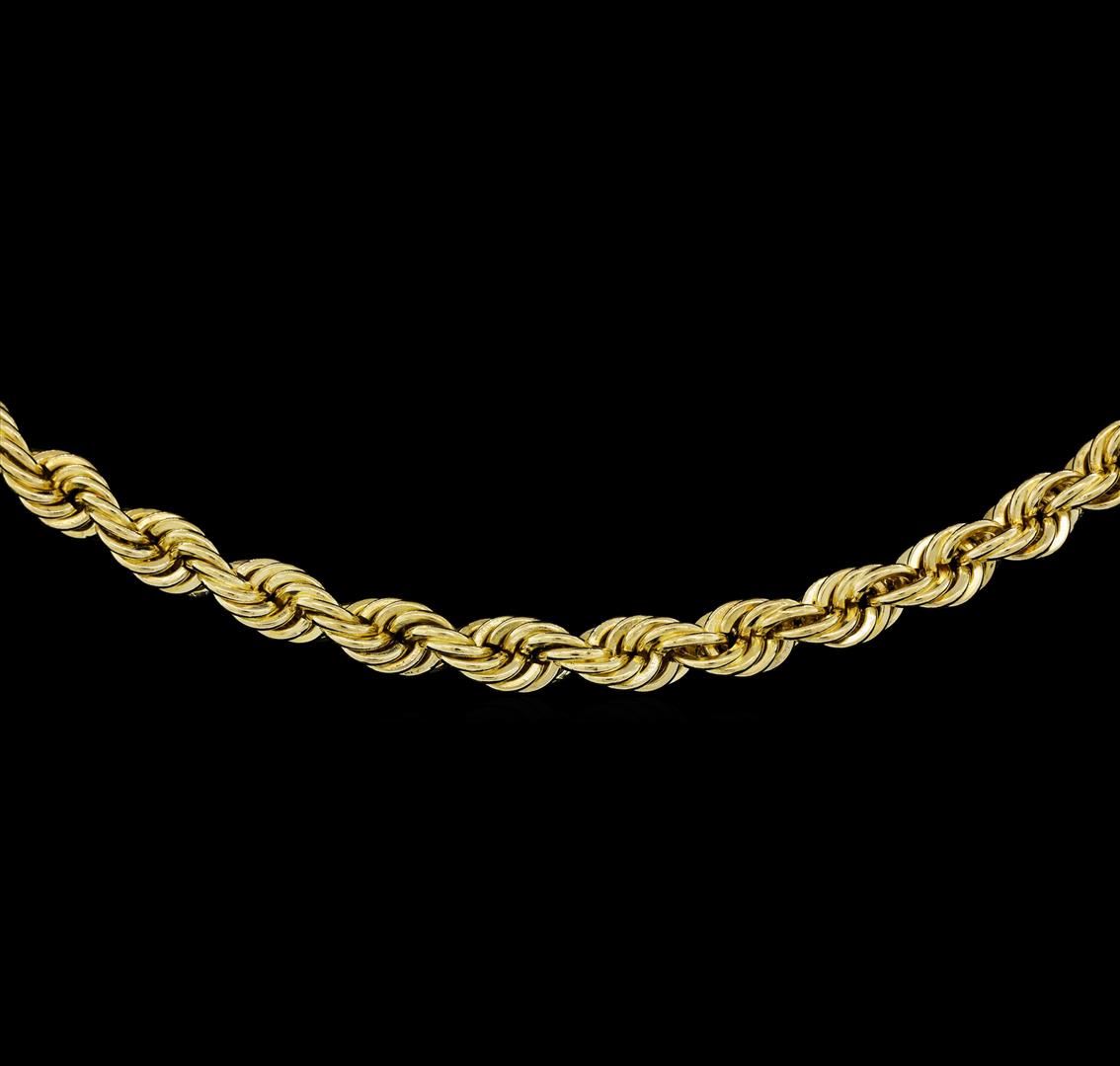 One diamond cut rope chain measuring five millimeters in width and twenty inches in length featuring: 14KT yellow gold weighing 39.4 grams.