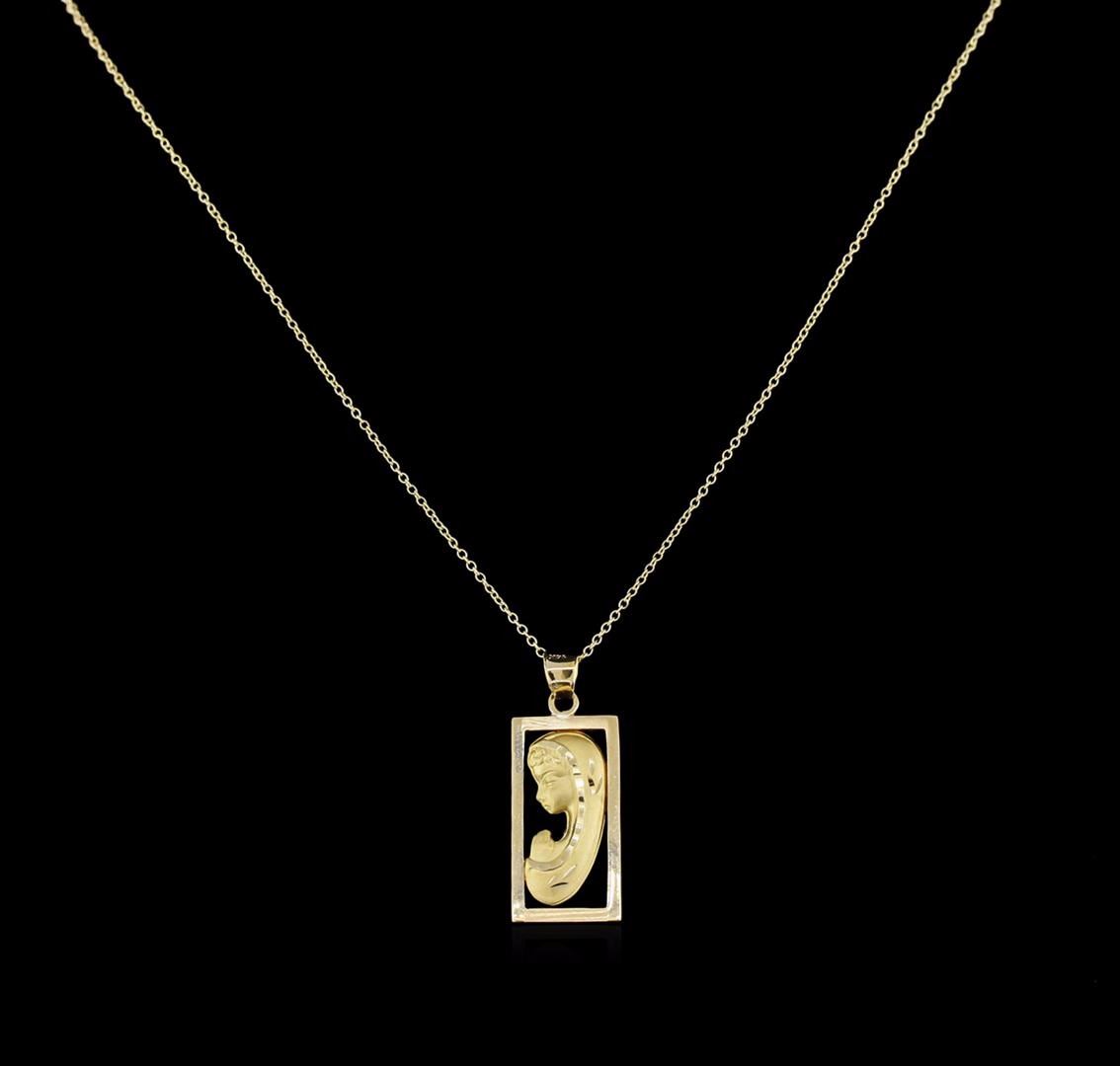 One religious pendant with chain featuring: 14KT yellow gold weighing 2.45 grams.