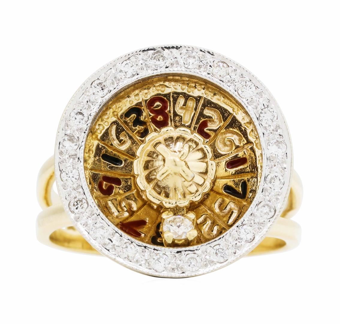 One ring featuring a functioning roulette wheel motif with: 14KT yellow gold weighing 7.4 grams containing diamonds weighing 0.40ctw. The ring is a size 7.
