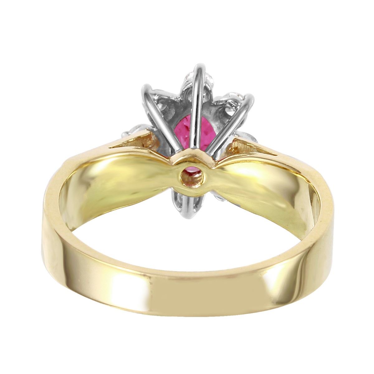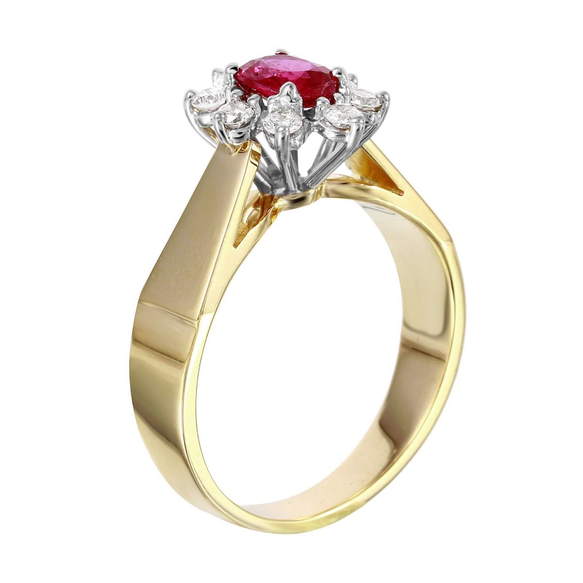 An oval cut ruby is prong set in the center of this brightly polished 14KT yellow gold ring, accented by round brilliant cut diamonds.SpecificationsJewelry InformationCategory: RingCategory Style: GemstoneNew/Used: Pre-OwnedGender: FemaleRing Size: 6.5Metal: 14KT Yellow GoldTotal Weight: 4.20 GramsTotal Diamond Weight: 0.25ctwTotal Gemstone Weight: 0.78ctwTotal Weight all Stones: 1.03ctwInternal ID:1822Diamond 1Total Carat Weight: 0.25ctwClarity: VS1-VS2Color: G-HShape: RoundCut: Round Brilliant CutCount: 8Gemstone 1Gemstone: RubyTotal Carat Weight: 0.25ctwCarat: 0.78ctwColor: RedShape: OvalCount: 1DisclaimersThe descriptions listed should not be construed as an appraisal. The detail is provided as a guideline for color, clarity, weights and measurements to the best of our ability. We welcome inspections. WE SHIP WORLDWIDE!This item has a Reserve established by our consigner.