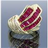 One 14KT Yellow Gold Ruby and Diamond Ring. Tapered Baguette Diamonds with a total weight of 0.75cts with a color of I-J and clarity of VS2-SI1. Total weight of this ring is 10.3 grams.