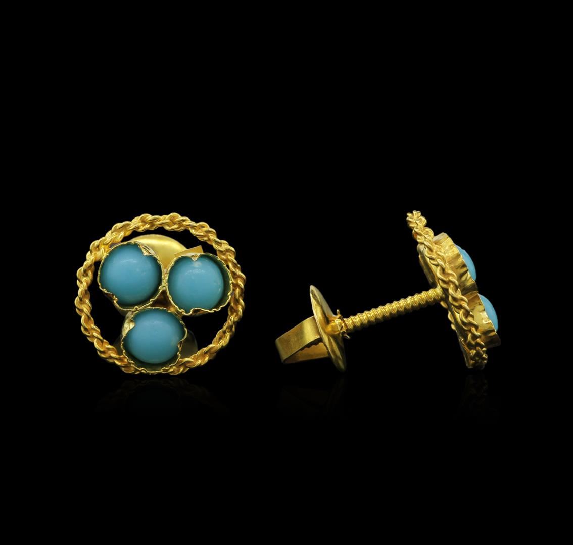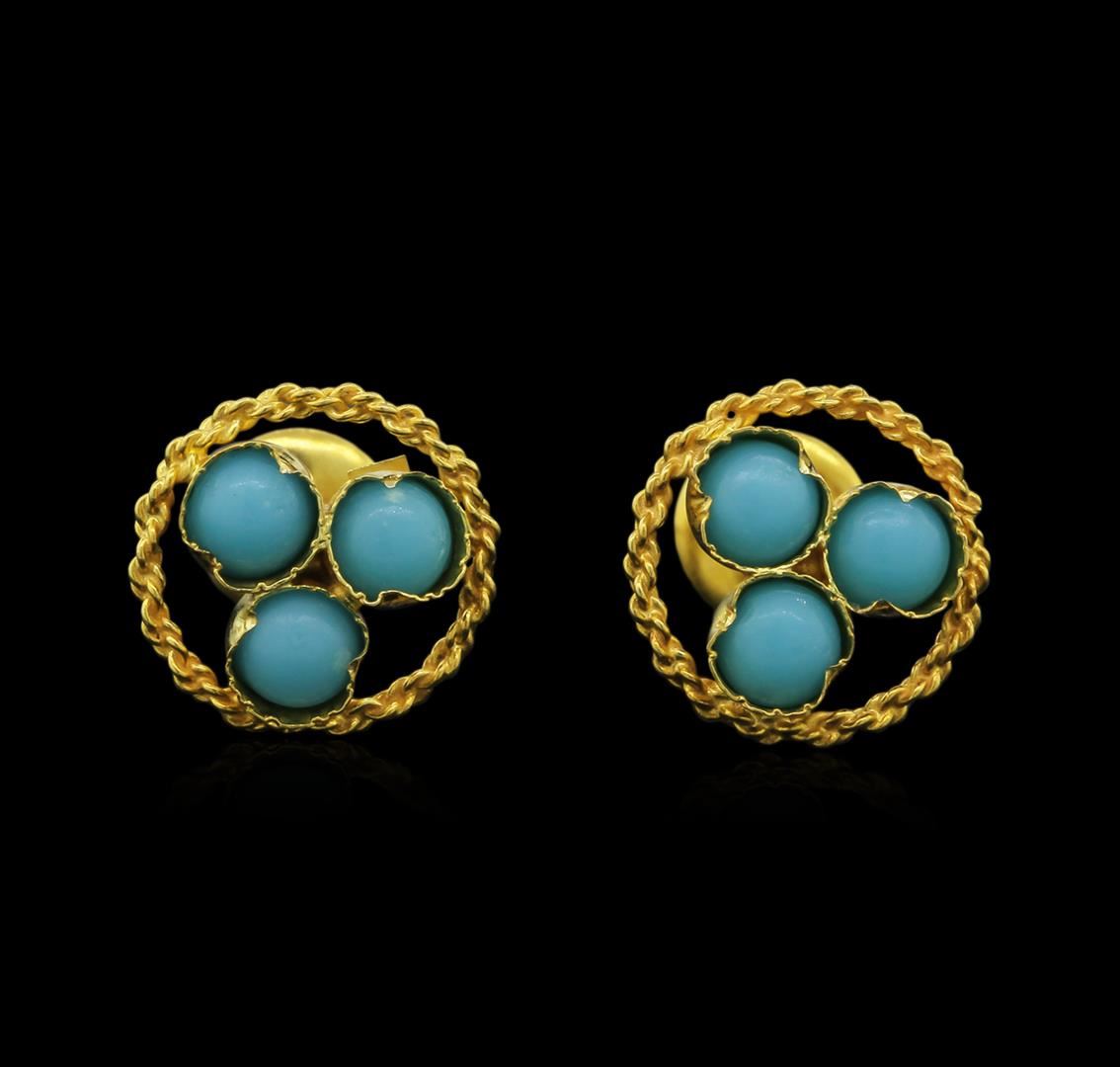 One pair of earrings featuring: 14KT yellow gold weighing 1.08 grams containing turquoise.