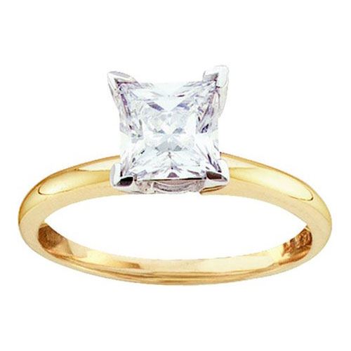 14KT Yellow Gold Two Tone 1/4CTW PRINCESS DIAMOND SOLIT **|**|** Source: 12656 ; Metal: Gold ; Metal Purity: 14KT ; Ring Size: 7 ; Main Stone: I1-I2 ; Total Carat: 0.25 ; Main Stone Color: H-I Color ; All diamonds are natural but colored diamonds are enhanced.