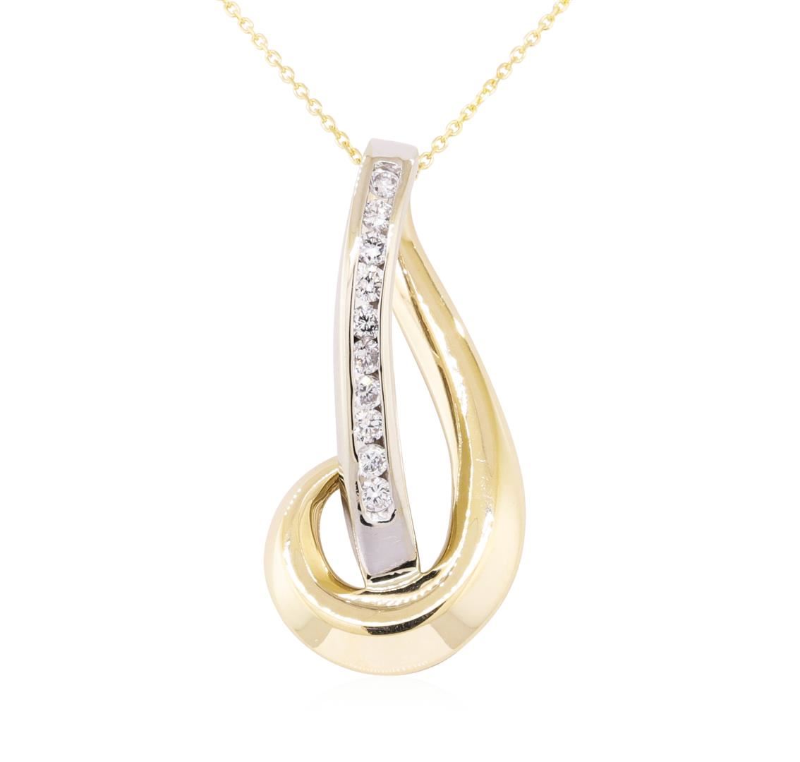 14KT Yellow and White Gold 0.40 ctw Diamond Freeform Pendant with Chain