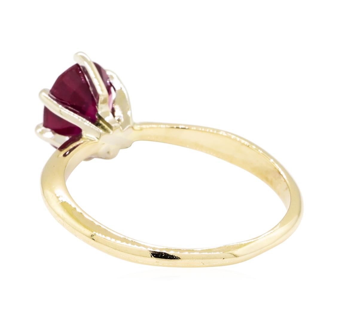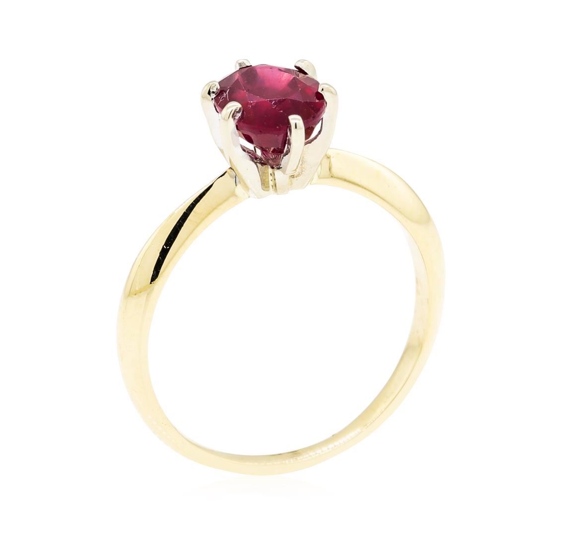 One ring featuring: 14KT yellow and white gold weighing 2.3 grams containing one oval ruby weighing 1.89ct. The ring is a size 6.5.
