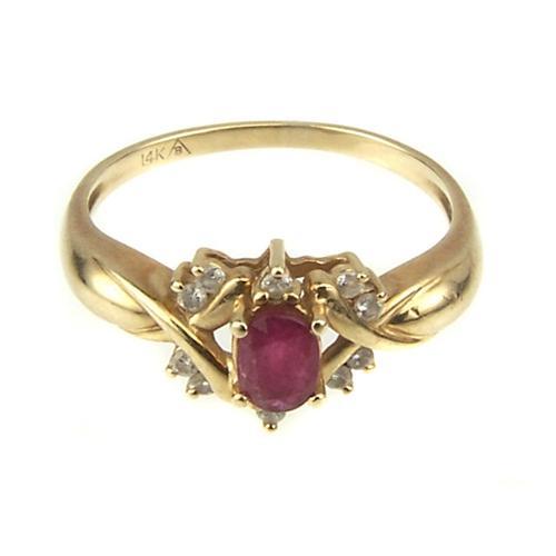 <tr><td>Title:14KT yellow gold Oval Ruby and Diamond Ring</td></tr>