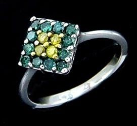 14K WHITE GOLD 1/2 CTW CANARY YELLOW AND BLUE DIAMOND RING