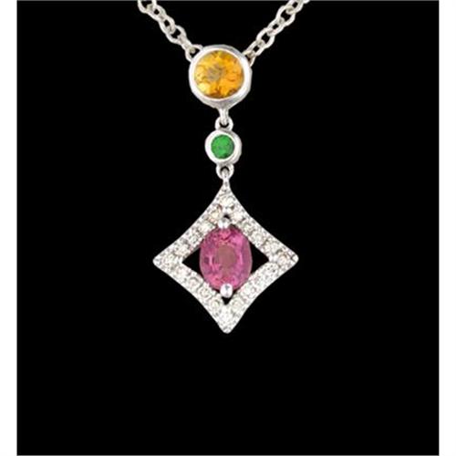 <P> <TABLE cellSpacing=0 cellPadding=0 width=650 border=0> <TR align=middle bgColor=#68a0e0> <TD> <TABLE cellSpacing=0 cellPadding=6 width="100%25" border=0> <TR align=middle> <TD><FONT face=Arial color=#ffffff size=6><B>14KW Gold 1.00ct. Multi Color /Diamond Necklace</B></FONT></TD></TR></TABLE></TD></TR> <TR bgColor=#d0e0f0> <TD> <TABLE cellSpacing=0 cellPadding=14 width="100%25" border=0> <TR> <TD align=middle> <TABLE cellSpacing=0 cellPadding=0 width="90%25" align=center border=0> <TR> <TD> <TABLE border=0> <TR> <TD vAlign=top align=middle> <CENTER> <TABLE cellPadding=2> <TR> <TD bgColor=#68a0e0><A name=ebayphotohosting></A><IMG alt="Image Hosted by Auctiva http://www.auctiva.com" src="http://pix.auctiva.com/pix/01/64/00/pd722.jpg" showcaseindex></TD></TR></TABLE></CENTER><BR></TD></TR> <TR> <TD vAlign=top><FONT face=Arial color=#010101 size=4>Fashionable multi color gemstones are set in this 14 karat white gold pendant that is framed with sparkling round diamonds totaling .14 carats. The gemstones total approximately 1.00 carat. It floats on a 14 karat white gold chain, 16 inches long. </FONT><BR> <P><FONT face=Arial color=#010101 size=4> <META content="Microsoft FrontPage 4.0" name=GENERATOR> <META content=FrontPage.Editor.Document name=ProgId> <META content="Microsoft FrontPage 4.0" name=GENERATOR> <META content=FrontPage.Editor.Document name=ProgId> <META content="glacier 011, default" name="Microsoft Theme"> <TABLE cellSpacing=0 cellPadding=0 width="90%25" align=center border=0> <TBODY> <TR> <TD> <TABLE border=0> <TBODY> <TR> <TD vAlign=top align=middle></TD></TR> <TR> <TD vAlign=top> <P></P> <P><BR><BR><FONT face=Arial color=#010101 size=4><FONT face=Arial size=2><FONT color=#000000>Please contact us via email with any questions </FONT><FONT color=#010101>Be sure to include the item number and description. .<A href="mailto:bhjewelry@worldnet.att.net"> bhjewelry@worldnet.att.net</A> </FONT></FONT> </P> <P><FONT face=Arial color=#010101 size=2><B> Payment </B></FONT><FONT face=Arial color=#010101 size=1>You can pay with visa and mastercard through </FONT><FONT face=Arial color=#0000ff size=1>Paypal</FONT><FONT face=Arial color=#010101 size=1> or send cashiers check or money order Personal checks will be held </FONT></FONT><FONT face=Arial color=#010101 size=1>7<FONT face=Arial color=#010101 size=4>-</FONT>10 business days. Items will be shipped to you in a gift box</FONT><FONT face=Arial color=#010101 size=1> </FONT> <P><B><FONT face=Arial color=#010101 size=2>Buyer Premium</FONT></B> <P><FONT face=Arial color=#000000 size=2>Winning bidders must add a Buyer's Premium of 15%25</FONT> <P><FONT face="Arial Narrow"><STRONG>Shipping Cost: Within USA:</STRONG><BR>$</FONT><FONT face=Arial>15 plus $0.50 for each $100.00 insurance</FONT> <P><FONT face="Arial, Helvetica, sans-serif">All items are shipped via UPS </FONT><FONT face="Arial Narrow">insurance</FONT> <P><STRONG>International bidders</STRONG> <FONT face=Arial color=#010101 size=2>should contact us for an estimate on shipping cost to your selected country</FONT><FONT face=Arial color=#010101 size=4> <P><FONT face=Arial color=#010101 size=1><A name=sevenday><FONT size=2><B>Return Policy</B></FONT></A></FONT><FONT face=Arial color=#010101 size=2><B> </B></FONT><FONT face=Arial color=#010101 size=1>If you're not satisfied within 7 days of receiving your item just email me and we will get started on your refund right away less shipping. You will receive 85%25 refund & 15%25 store credit on any future purchase. </FONT> <P><FONT face=Arial color=#010101 size=1>N.Y. residents require add. 8.25%25 taxes</FONT><BR></P> </FONT></TD></TR></TABLE></TD></TR></TABLE></FONT><BR> <P><FONT face=Arial color=#010101 size=4></FONT><FONT face=Arial color=#010101 size=4></FONT> <P><FONT face=Arial color=#010101 size=2></FONT><BR> <P> <P><FONT face=Arial color=#010101 size=4><A style="COLOR: #010101" href="http://cgi6.ebay.com/ws/eBayISAPI.dll?ViewSellersOtherItems&userid=bhjewelry&since=-1&sort=2&rows=100">Please look at my other items for sale!</A></FONT><BR></P></TD></TR></TABLE></TD></TR></TABLE></TD></TR></TBODY></TABLE></TD></TR></TBODY></TABLE></P>