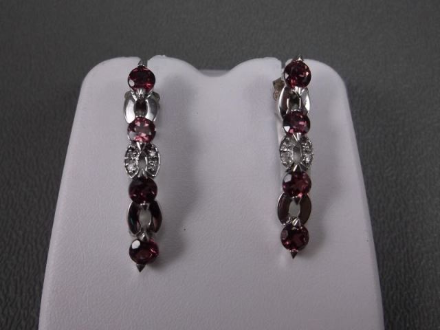 14KWG Diamond & Rhodolite Garnet Earrings Marked CS Weight: 3.9 Grams Retail: $2,250.00