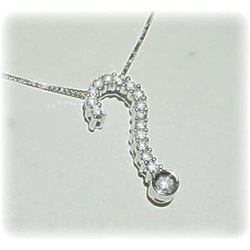 1/6 Carats of Genuine Diamonds are set in this fabulous, solid 14 Karat White Gold "Question Mark" Pendant! It's strung on a fine, solid white gold, baby box chain of 16 inches length. Sparkling and fun! Pendant measures about 1/2 inch tall. Retail price tags still attached read: $360.00. Packaged in its original "Macy's" box of simulated leather and satin lined. Brand new, Close Out item.