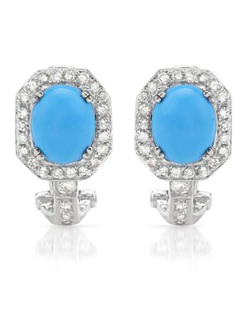 REF-108A2N ---- 14KWhite Gold 4.56CTW Turquoise & Diamond Earring