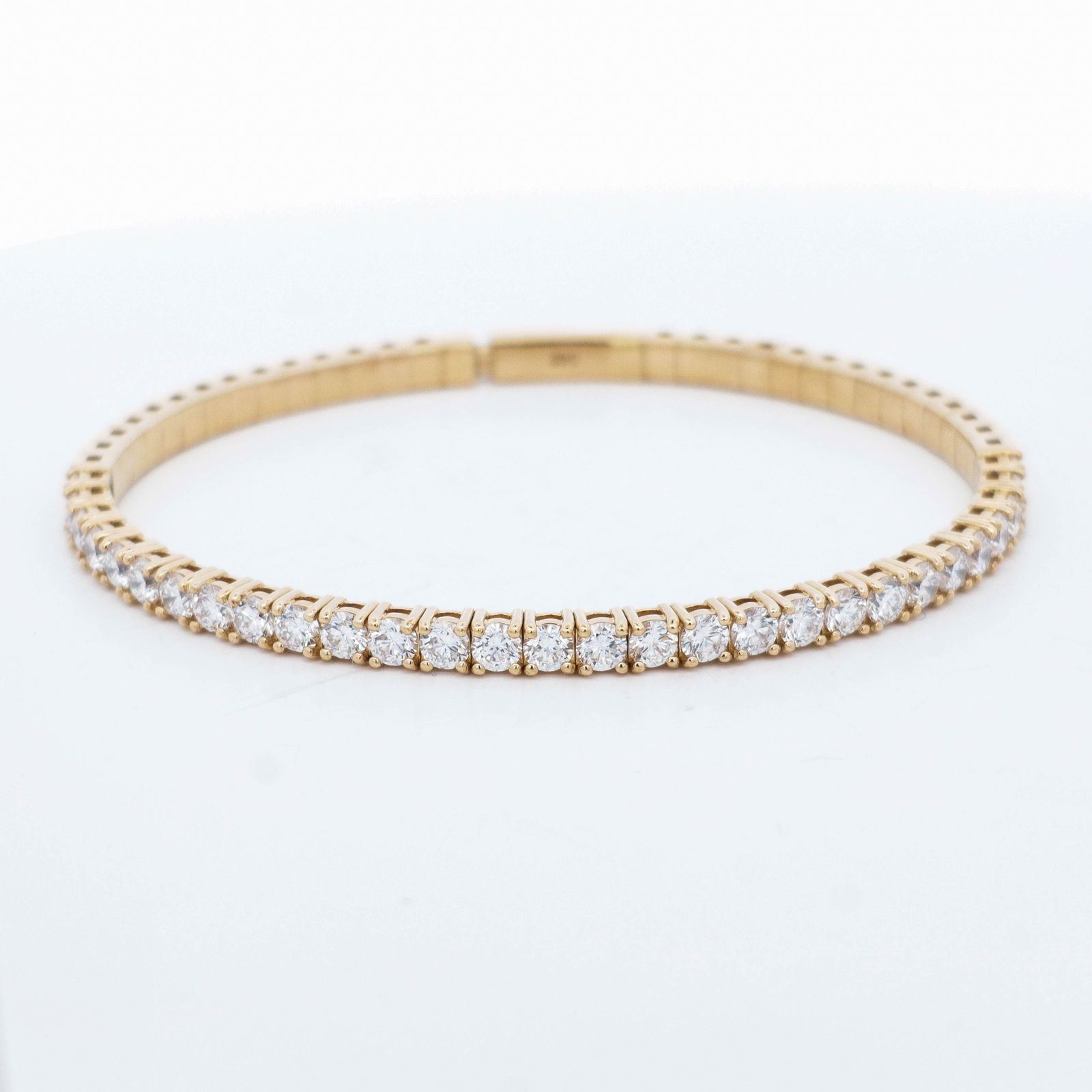 14KYG 3.60ctw Lab Grown Diamond Bracelet 7.5" circumference 2.5" diameter Flex bangle with box clasp Beautiful and elegant