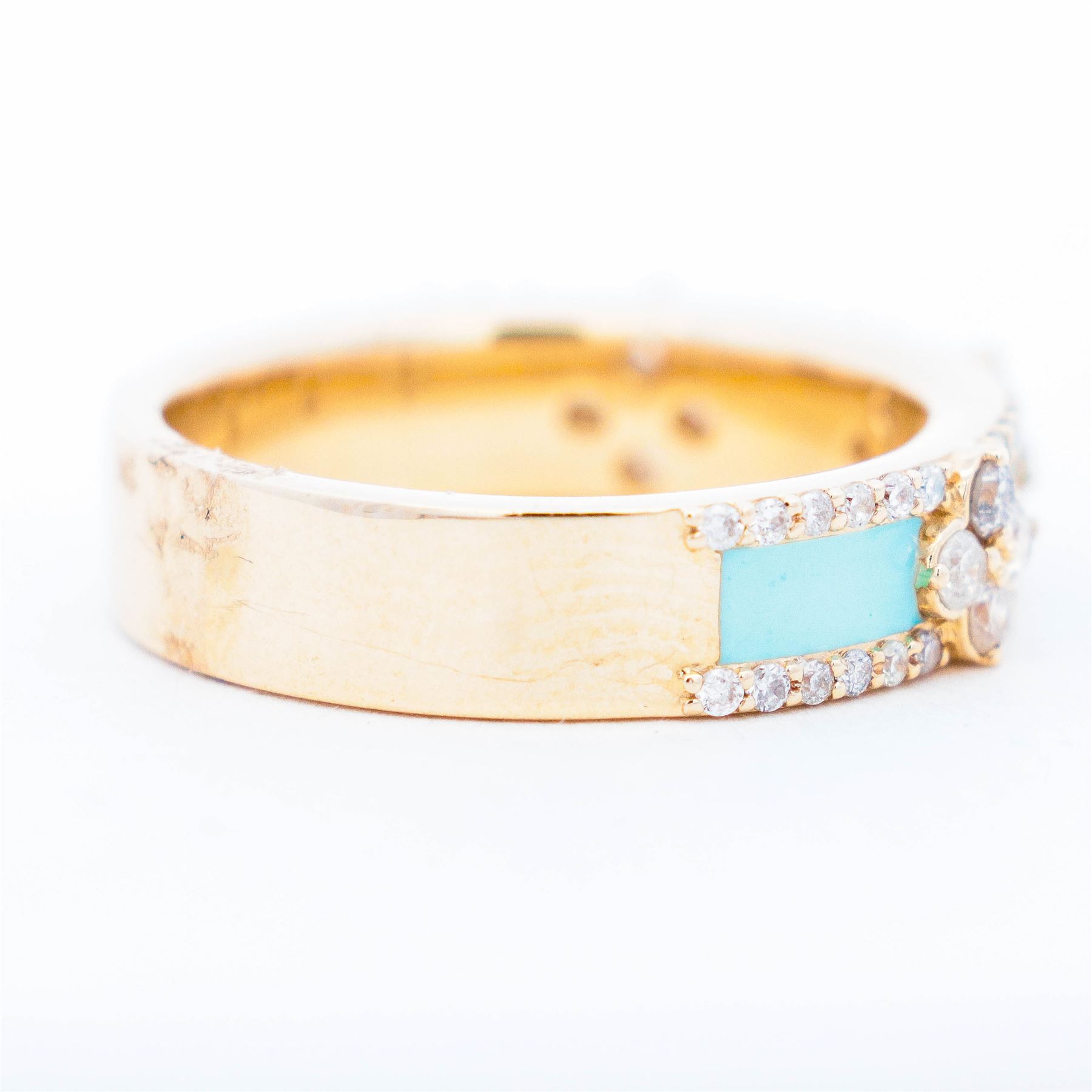14KYG .60ctw natural Diamond & amp; Turquoise Enamel 3 motif Alhambra/Quatrefoil Band