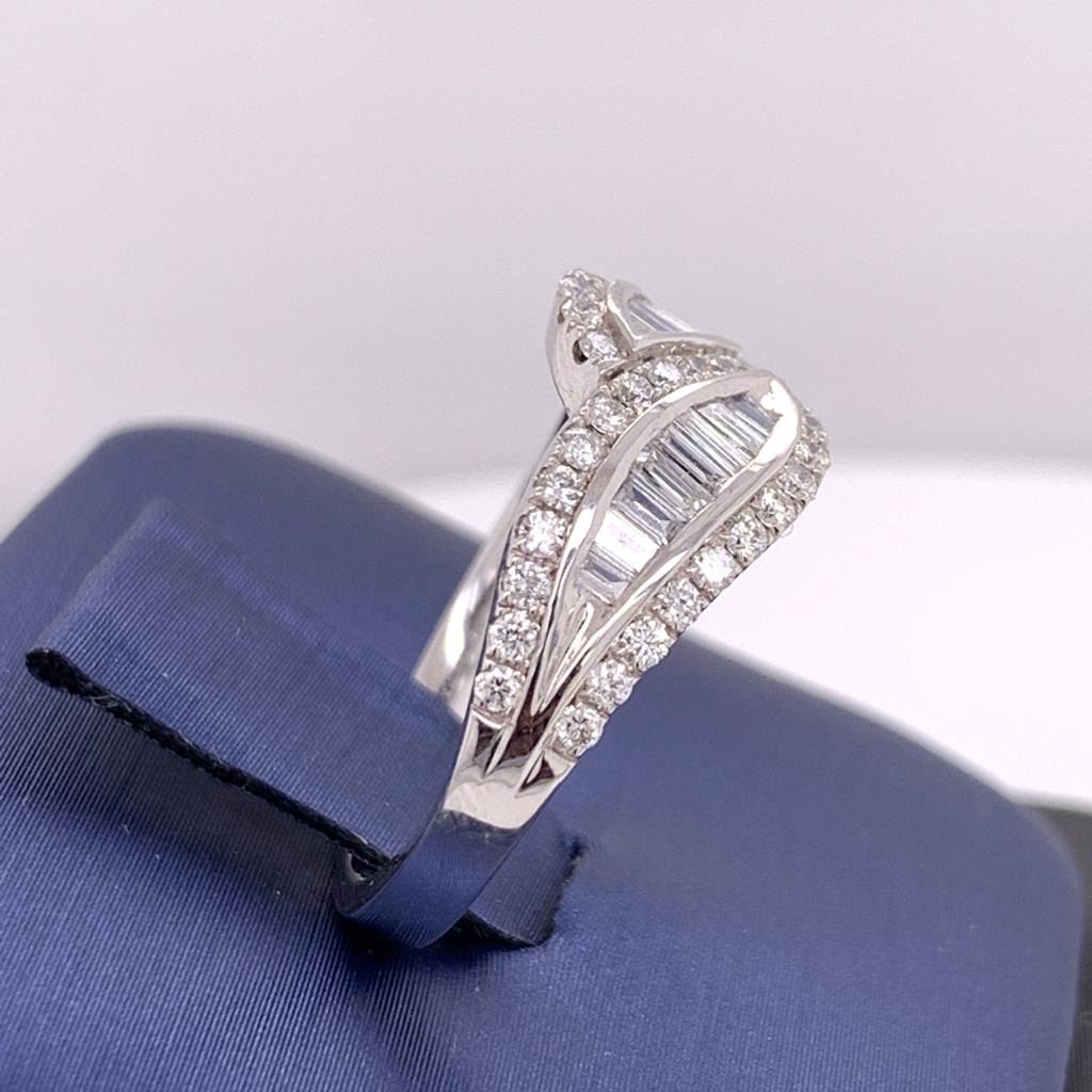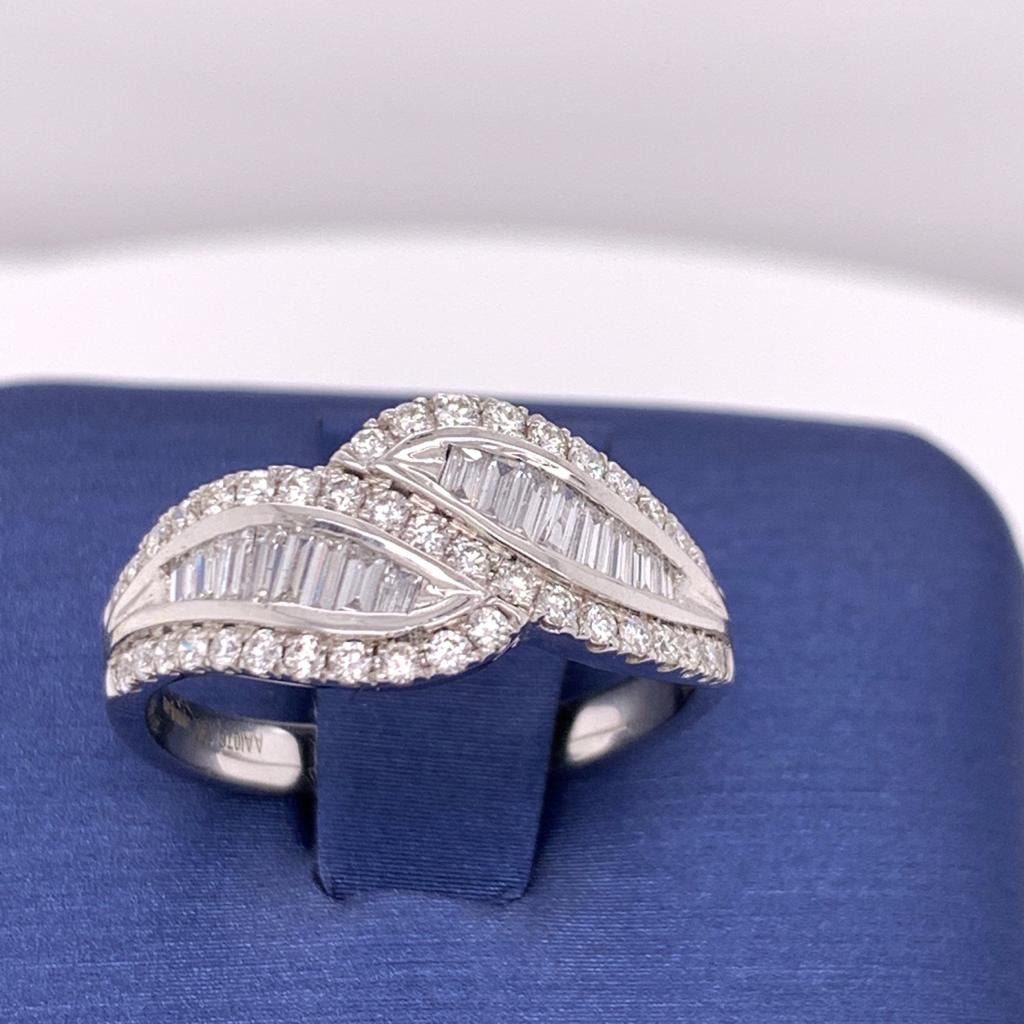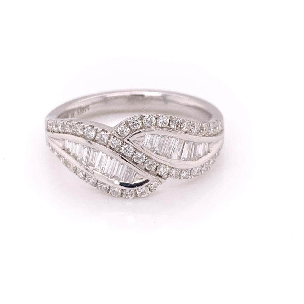 14Kt White Gold Ring. Fancy Baugette & Round Diamond Ring. With Baugette Diamonds Channel Set And Full Cut Round Brilliant Cut Diamonds Prong Set. Color - H-I Clarity - Vs2-Si1 Weight - 3.90Grams. , 14K White Gold , Natural Diamonds , Bgts 0.33Ct Rds 0.41Ct , Size 7 1/2 , Free Sizing Upto 2 Sizes Up Or Down , New From Manufacture.