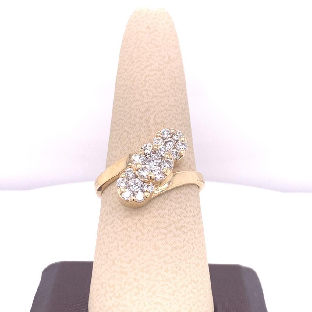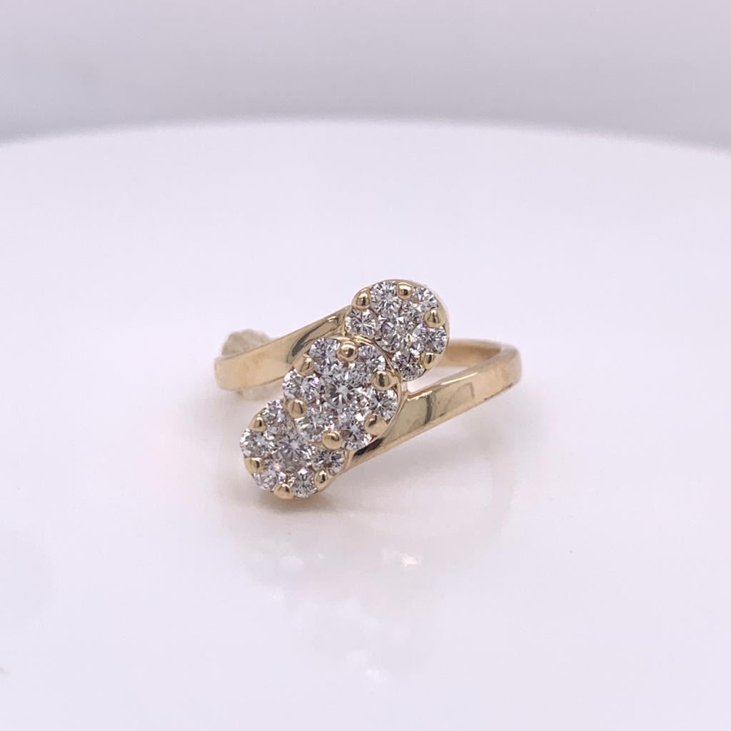 14Kt Yellow Gold Ring With 0.75Cts Of Full Cut Round Brilliant Cut Diamonds Set In A Prong Setting At An Angle In A Triple Flower Style Ring. Color H-I Clarity Vs2-Si1. Weight 4.70 Grams. , 14Kt Yellow Gold , Natural Diamonds , Total Wt Diamonds 0.75Cts , Ring Size 8.1/4 , Free Sizing +/- 1 Size , New From Manufacture.