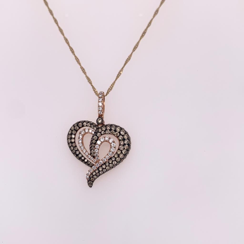 Fancy Choco & White Diamond Pendant Set In A Fancy Heart Style Pendant Set In 14K Rose Gold Clarity Vs-Si ,color G-h Weight 2.3 Grams. , 14K Rose Gold , Natural Diamonds , Diamonds Cho-0.85Ct Wht-0.26Ct , Height 3/4 Inch , , New From Manufacture.