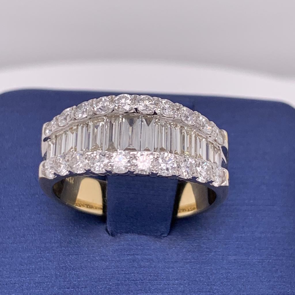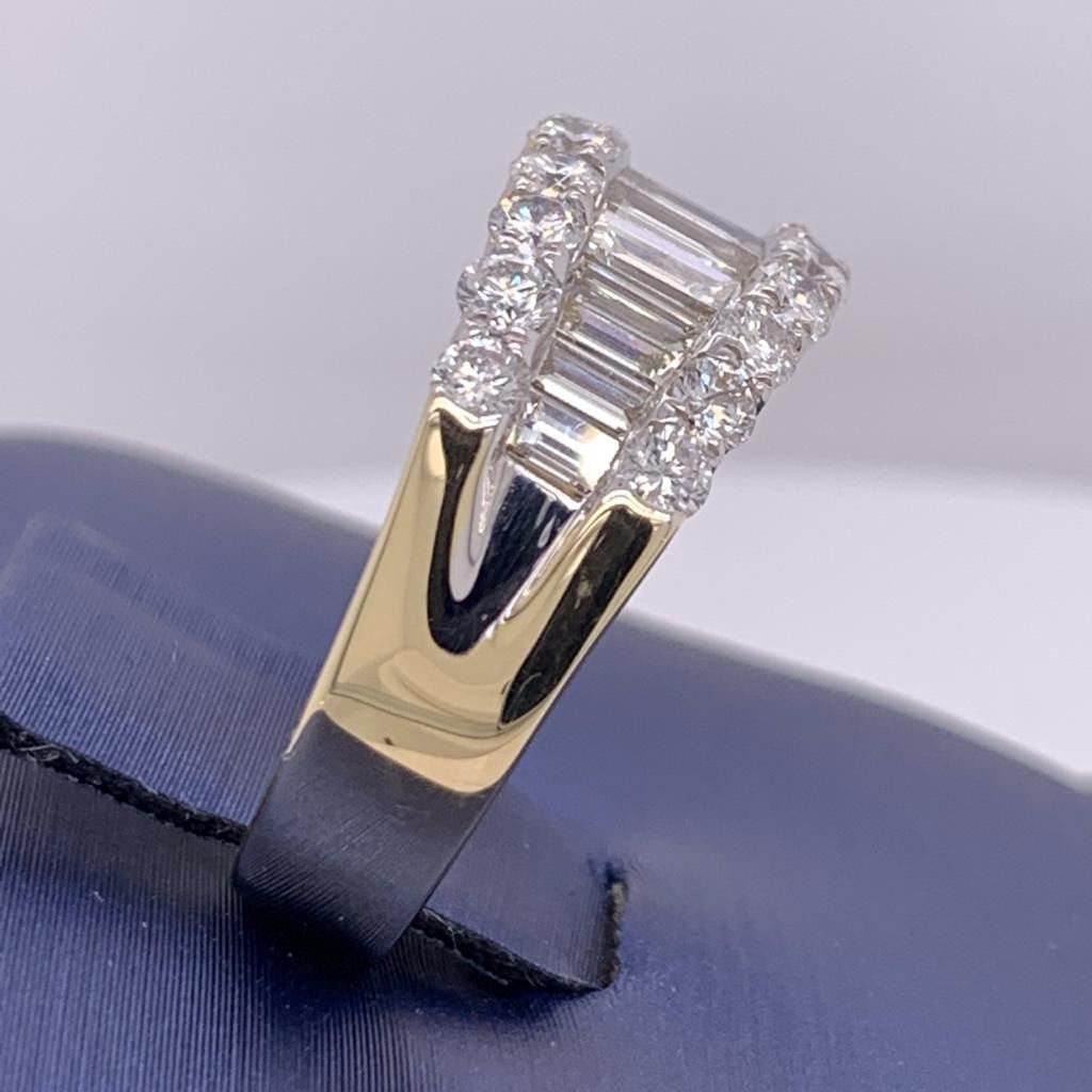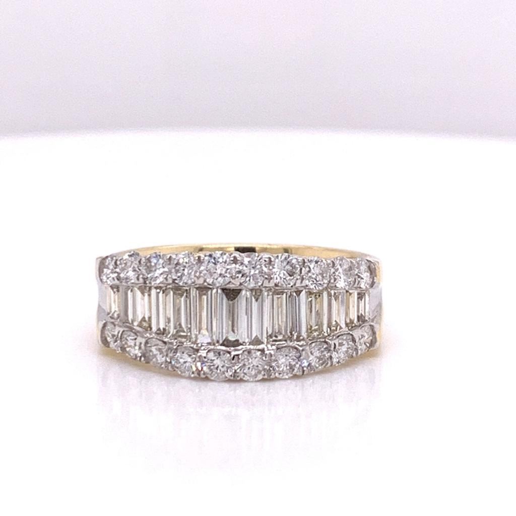 14Kt Yellow Gold Ring. Fancy Baugette & Round Diamond Ring. With Emerald Cut Baugette Diamonds Channel Set And Full Cut Round Brilliant Cut Diamonds Prong Set.   Color - H-I   Clarity - Vs2-Si1   Weight - 6.2 Grams. , 14K Yellow Gold , Natural Diamonds , Bgts 0.90Ct Rds 1.03Ct , Size 7 1/2  , Free Sizing Upto 2 Sizes Up Or Down , New From Manufacture.