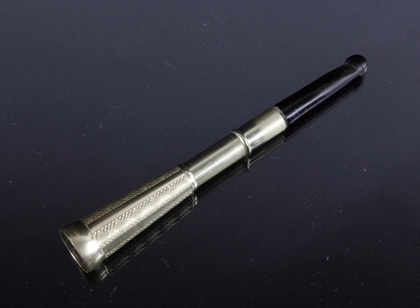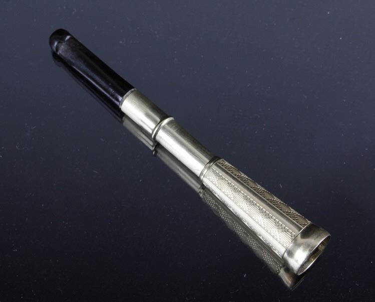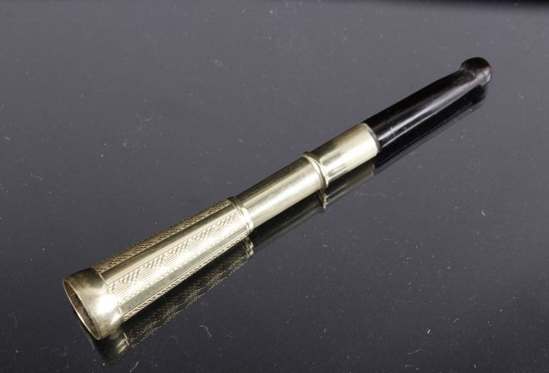 This lot features a 1930s era 14Kt collapsible cigarette holder. The holder has a stunning pressed designed and a weight of 5.5 grams. Most frequently made of silver, jade or bakelite, cigarette holders were considered an essential part of ladies' fashion from the early 1910s through the early 1970s. The overall condition of this piece is good. Measures: 2 3/4" L