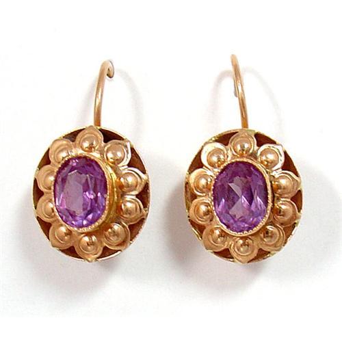 <tr><td>Title:14Kt Gold Earrings with Amethyst</td></tr>