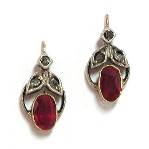 </font></strong>The earrings are in the style of the Edwardian era, but made in Austria. The rose cut diamonds are set in silver, and the rubies are set in 14Kt. gold. 17mm to top of the earwire. Total approximate weight of the rubies 0.90 Ct.</font>