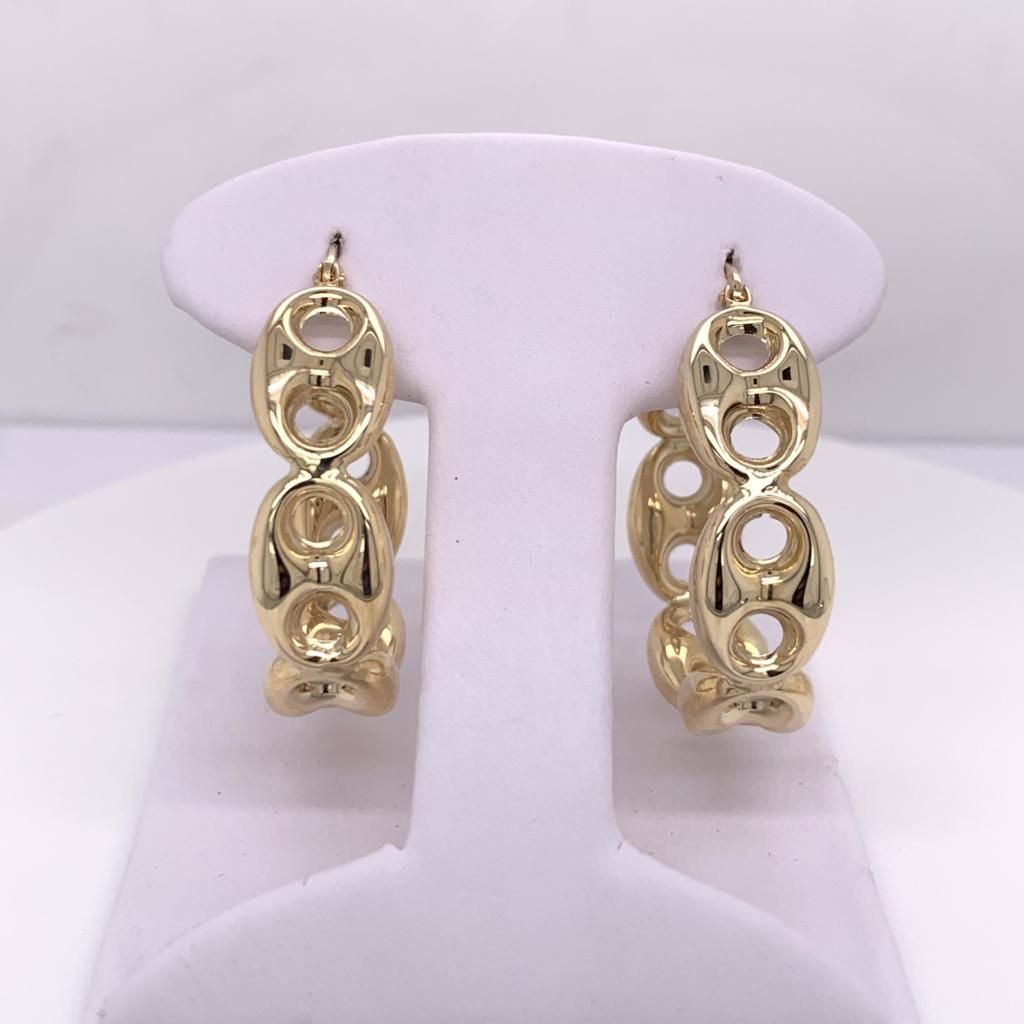 14Kt Yellow Gold Earrings. With A High Polished Puffed Gucci Design & Snap on Locking system.