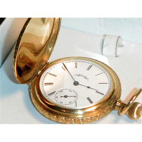 <tr><td>Title:14Kt Gold Elgin Hunting Case Pocket Watch</td></tr>