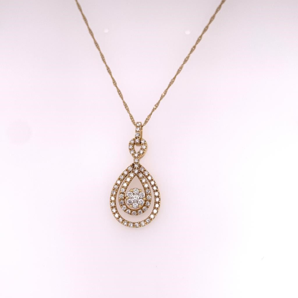 Double Drop Style Diamond Pendant With Round Diamonds Set In 14K Yellow Gold. Color G-H , Clarity Vs-Si. Weight 3.2 Grams. , 14K Yellow Gold , Natural Diamonds , Rounds 0.65Cts , Height 1 Inch , , New From Manufacture.
