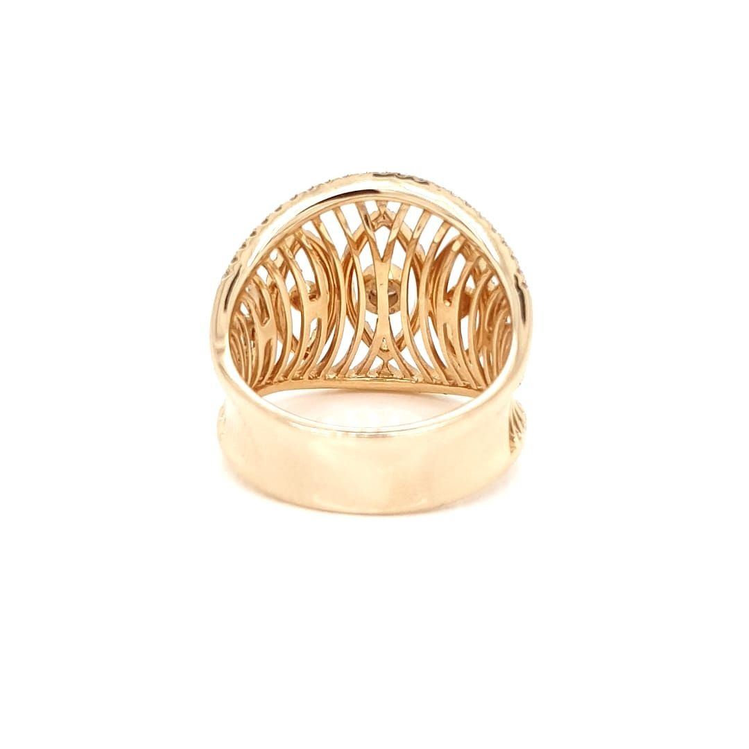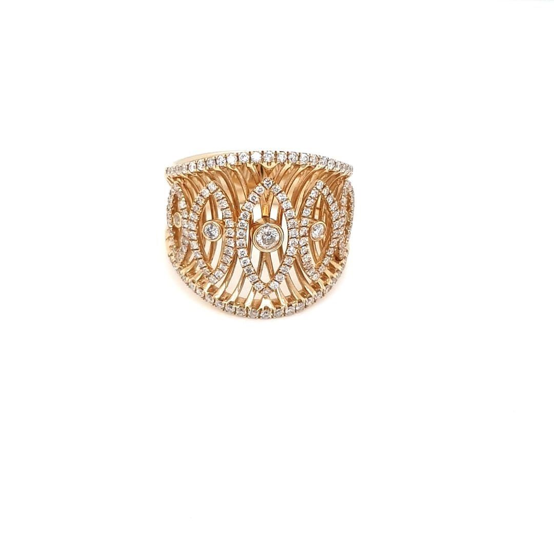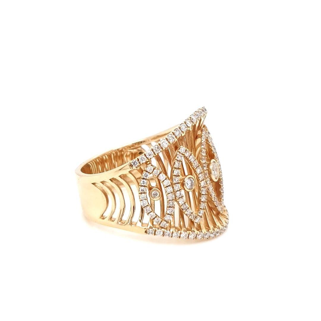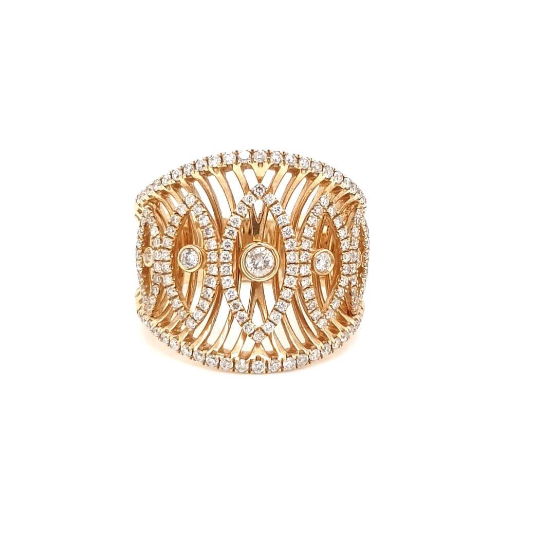 14Kt Yellow Gold Ring. With Full Cut Round Brilliant Cut Diamonds. With The 5 Diamonds In The Center Bezel Set And The Rest Of The Diamonds Set In A Prong Setting.