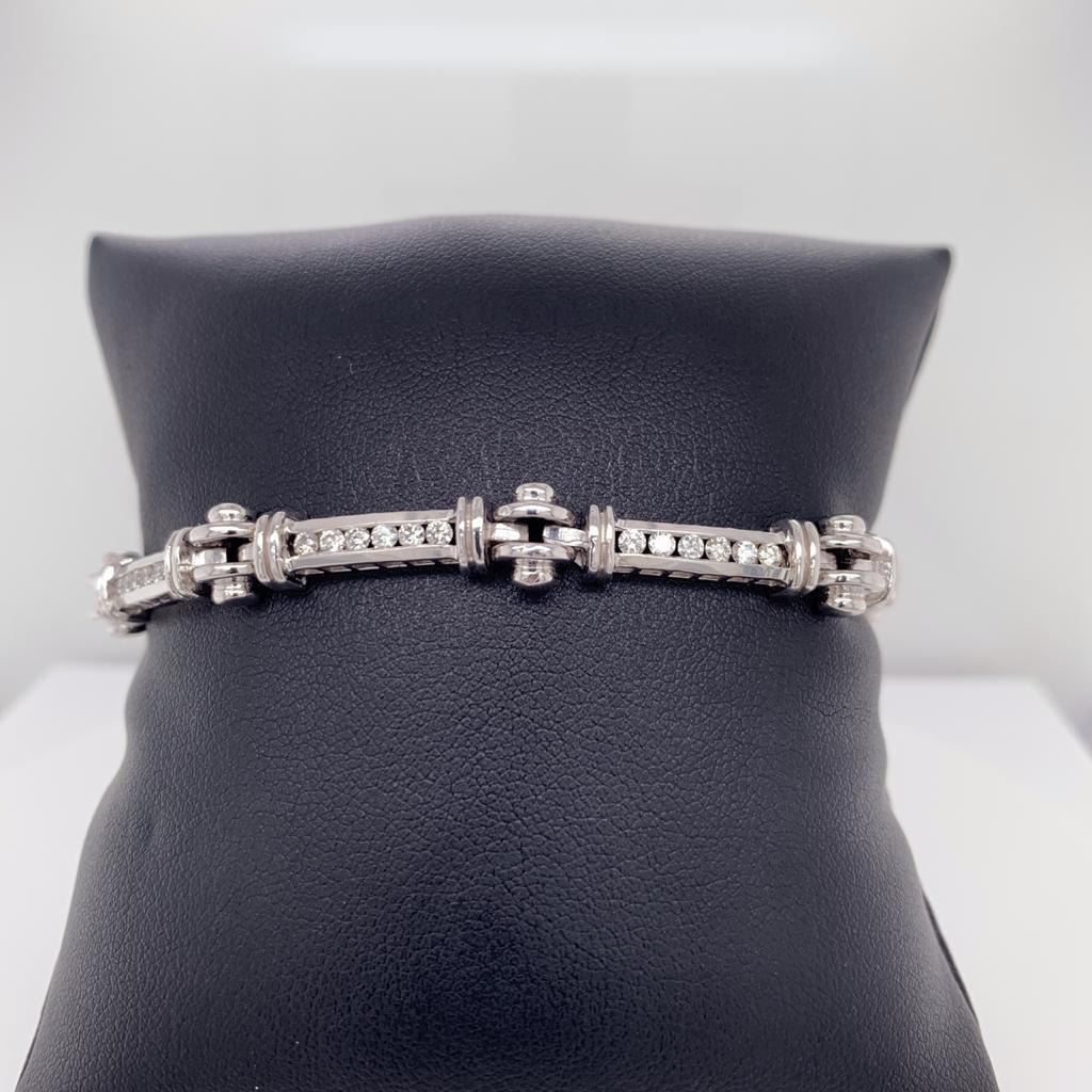 Fancy Diamond Bracelet. With Round Diamonds Set In A Channel Setting In A Heavy 14K White Gold Bracelet. Color H-I Clarity Vs2-Si1. Weight 19.2 Grams , 14K White Gold , Natural Diamonds , Rounds 1.25Cts , 6 3/4 Inches , , New From Manufacture.