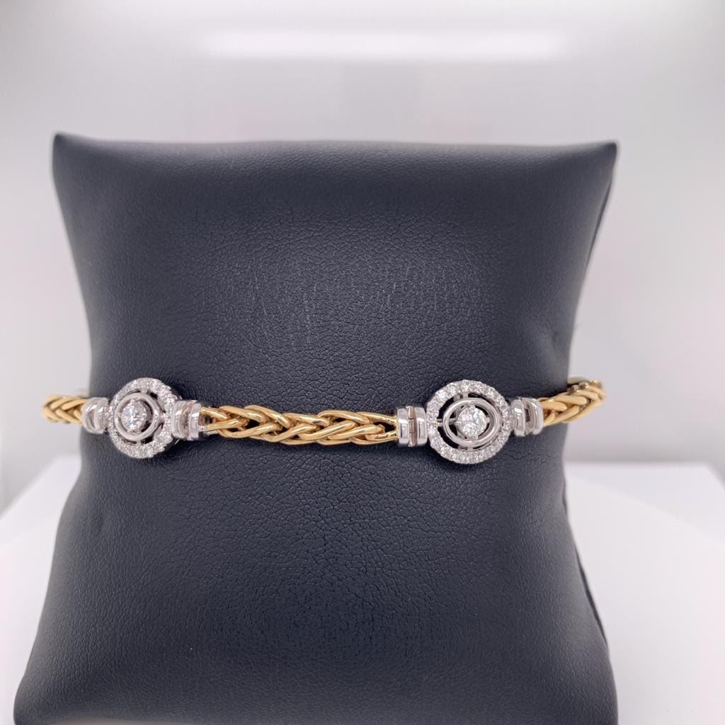 Fancy Diamond Bracelet In White And Yellow Gold With Round Diamonds.