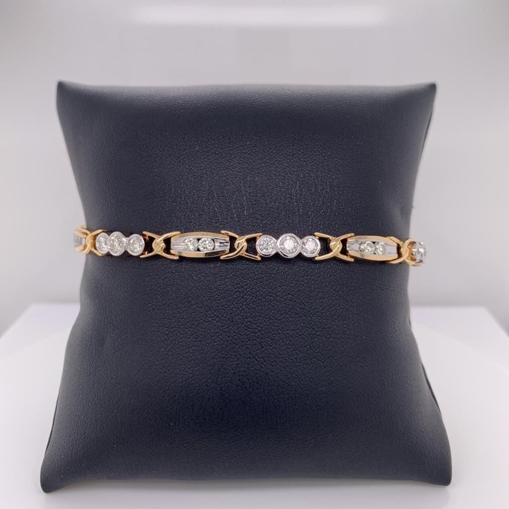 Fancy Diamond Bracelet In Yellow Gold With Round Diamonds Set In A Bezel And Channel Setting .Color H-I, Clarity Vs2-Si1. Weighing 15.10 Grams. , 14K Yellow Gold , Natural Diamonds , Rounds 2.85Cts , 7 Inches , , New From Manufacture.