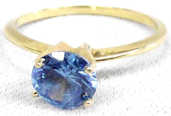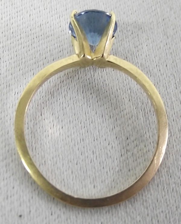 14Kt Gold Ring Aquamarine Stone. There is a 2.25 carat aquamarine stone in a 14 kt gold setting on this size 6 ring.