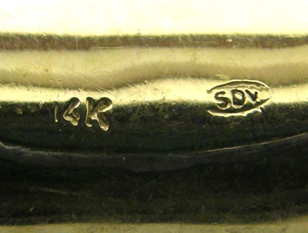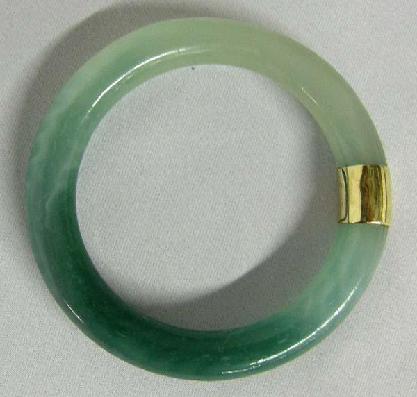 14Kt Gold and Jade Bangle Bracelet. Measures approx. 7.25'' inside. SHI $15.