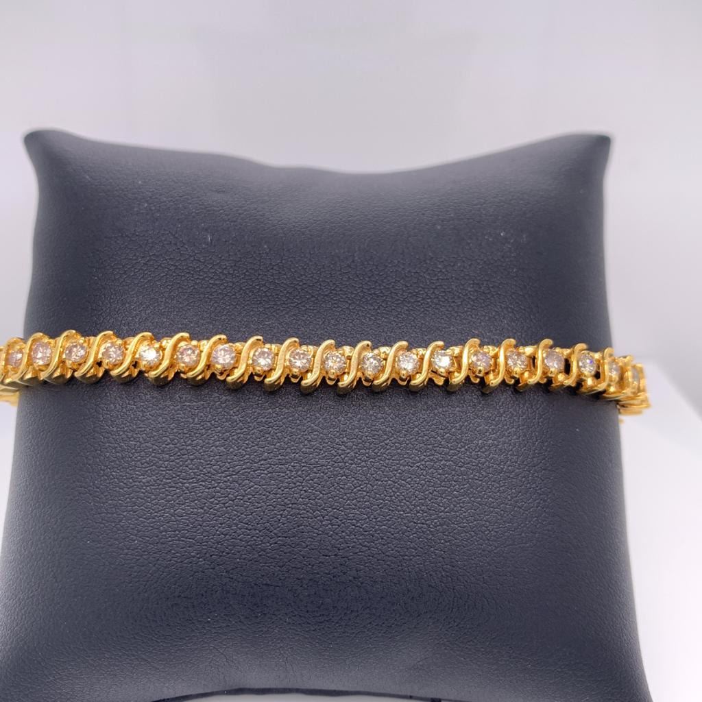 Diamond Bracelet With 47 Full Cut Round Brilliant Cut Diamonds Set In A Prong Setting In 14Kt Yellow Gold In A "S" Design. Color I-J, Clarity Vs-Si. Weight 20.10 Grams , 14Kt Yellow Gold , Natural Diamonds , Total Diamond Wt 3.00Cts , 7.1/4 Inches , , New From Manufacture.
