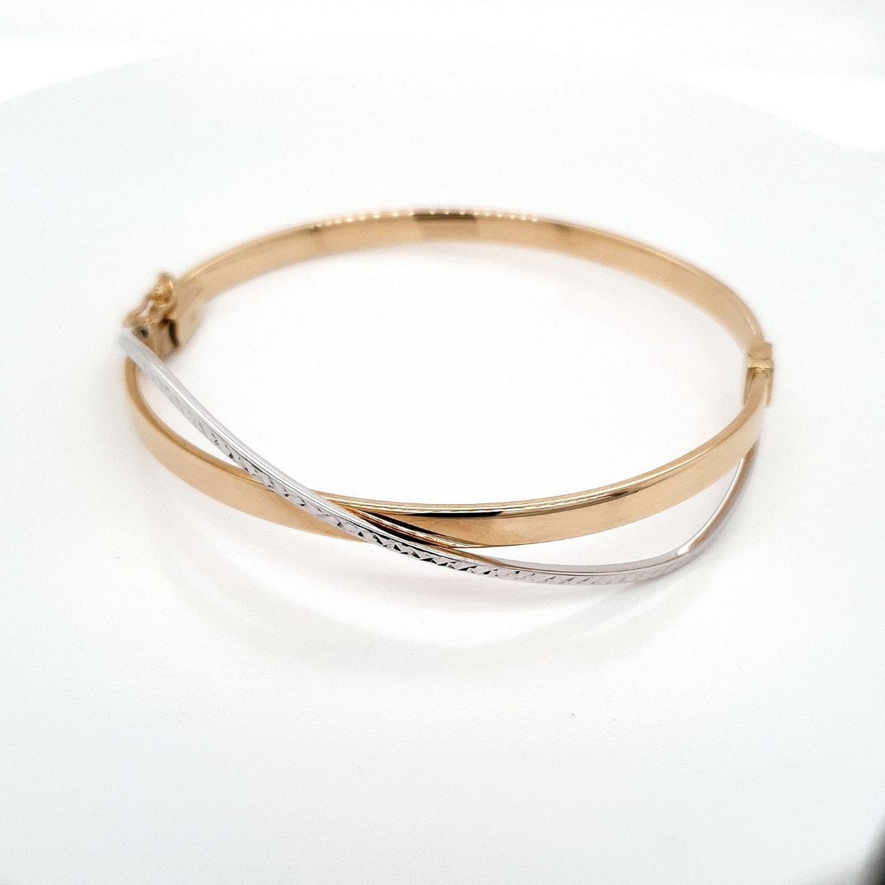 14Kt Two Tone Gold Bangle.Fancy Dimond Cut Style, Oval Shape Bangle  , 14Kt Two Tone Bangle ,  ,  , 7"-7 1/2" Bangle,5.6 Grams ,  , New.