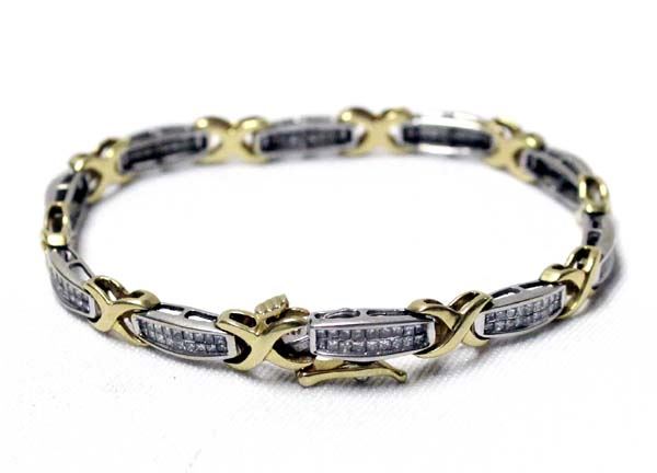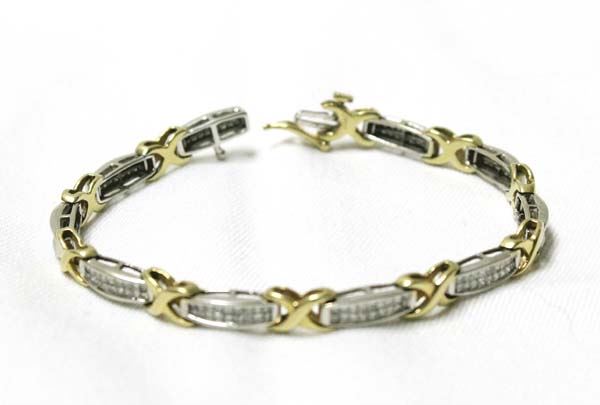 From the Posey Estate we have a 14Kt Yellow & White Gold and Diamond Link Bracelet, measures 7.25'' end to end x 3/16''W, marked JWBR (JWBR is a registered trademark presently owned by Verigold Ltd), 14.02g in total wt.