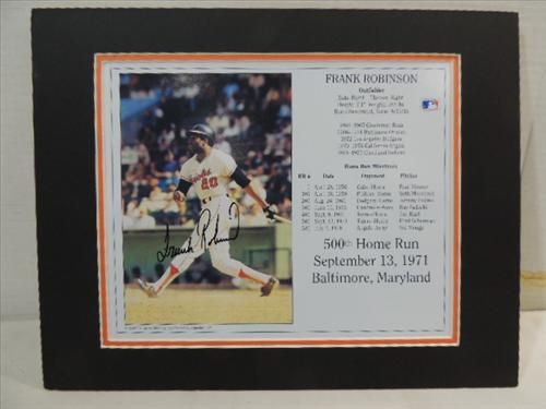 14X11 BASEBALL PHOTO & STATS AUTOGRAPH FRANK ROBINSON COA. INCLUDES COA FROM MFP II. AS SHOWN. VIDEW PICTURE FOR DETAIL. PLEASE BE ADVISED, AND INFORMED REGARDING SIGNATURES OR AUTOGRAPHS THAT WE SELL AT AUCTION: WE ARE NOT AUTHENTICATORS, AND WE DO NOT AUTHENTICATE, OR VALIDATE ANY AUTOGRAPHS OR SIGNATURES THAT WE OFFER AT AUCTION. SOME AUTOGRAPHS OR SIGNATURES MAY COME WITH AN AUTHENTICATION FROM ANY ONE OF LITERALLY HUNDREDS OF AUTHENTICATORS ACROSS THE COUNTRY, AND AROUND THE WORLD. WE DO NOT ENDORSE ANY AUTHENTICATOR, NOR DO WE GUARANTEE THAT ANY AUTOGRAPH OR SIGNATURE IS AUTHENTIC, OR THAT IT WILL PASS AUTHENTICATION BY ANY AUTHENTICATOR. ALL AUTOGRAPHS OR SIGNATURES ARE SOLD